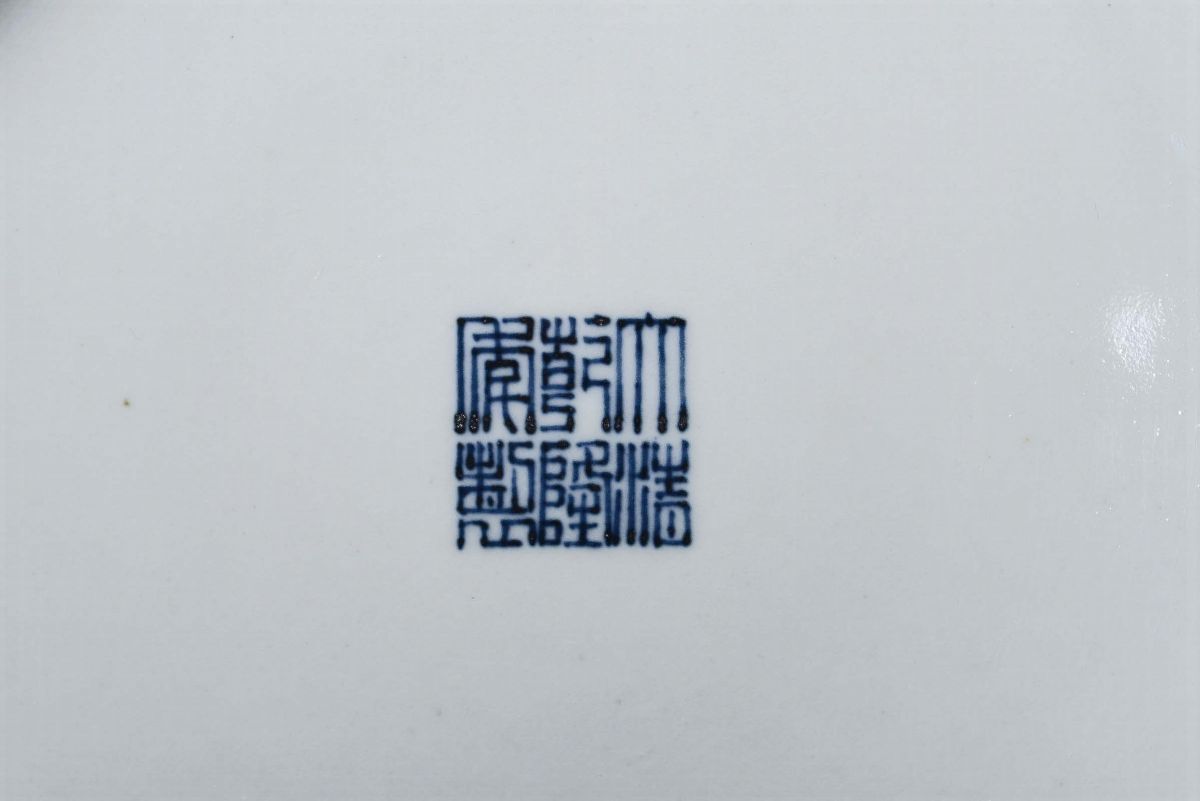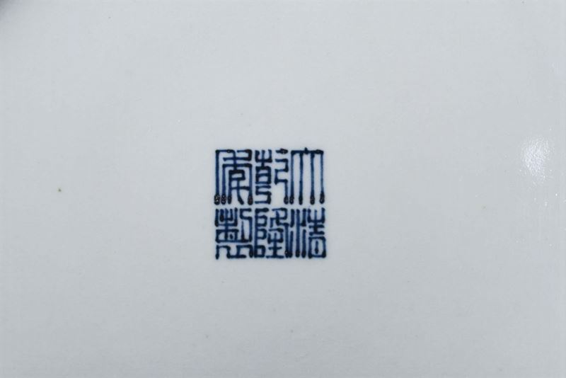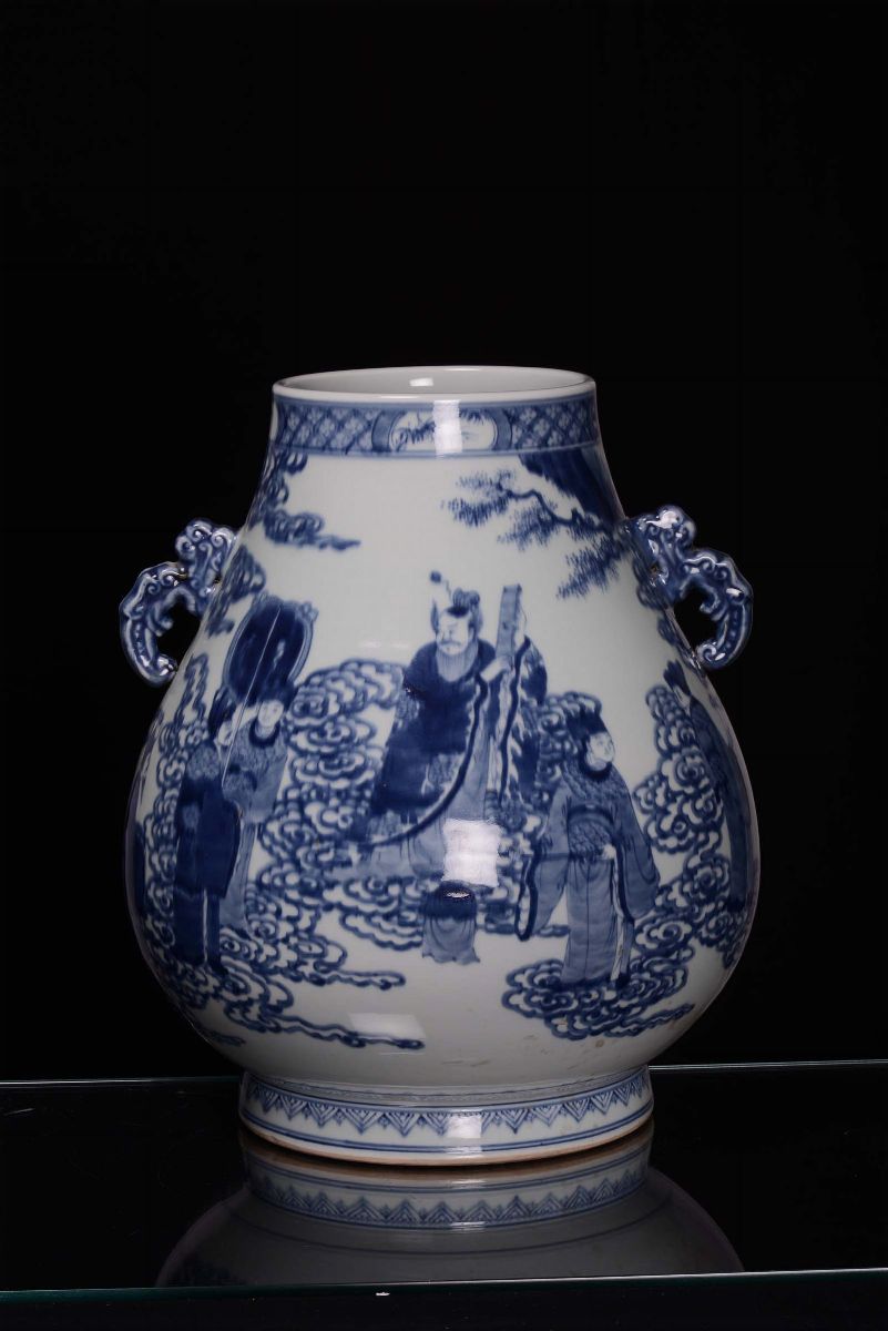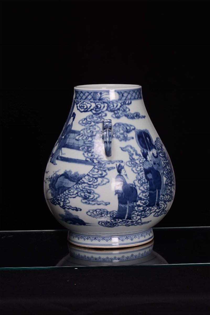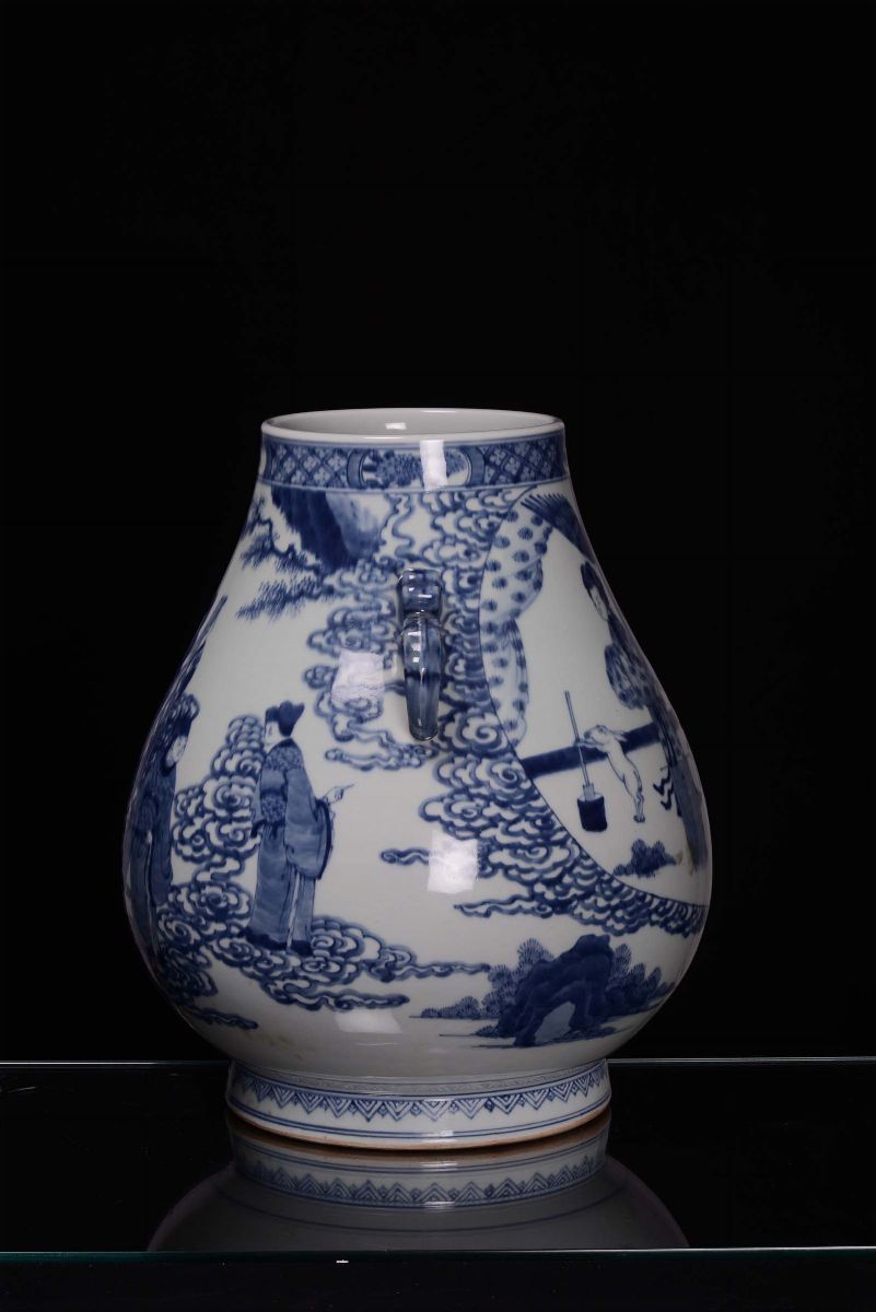 A white and blue porcelain vase with female figures, China, Qing Dynasty , 19th century apocryphal Qianlong mark
