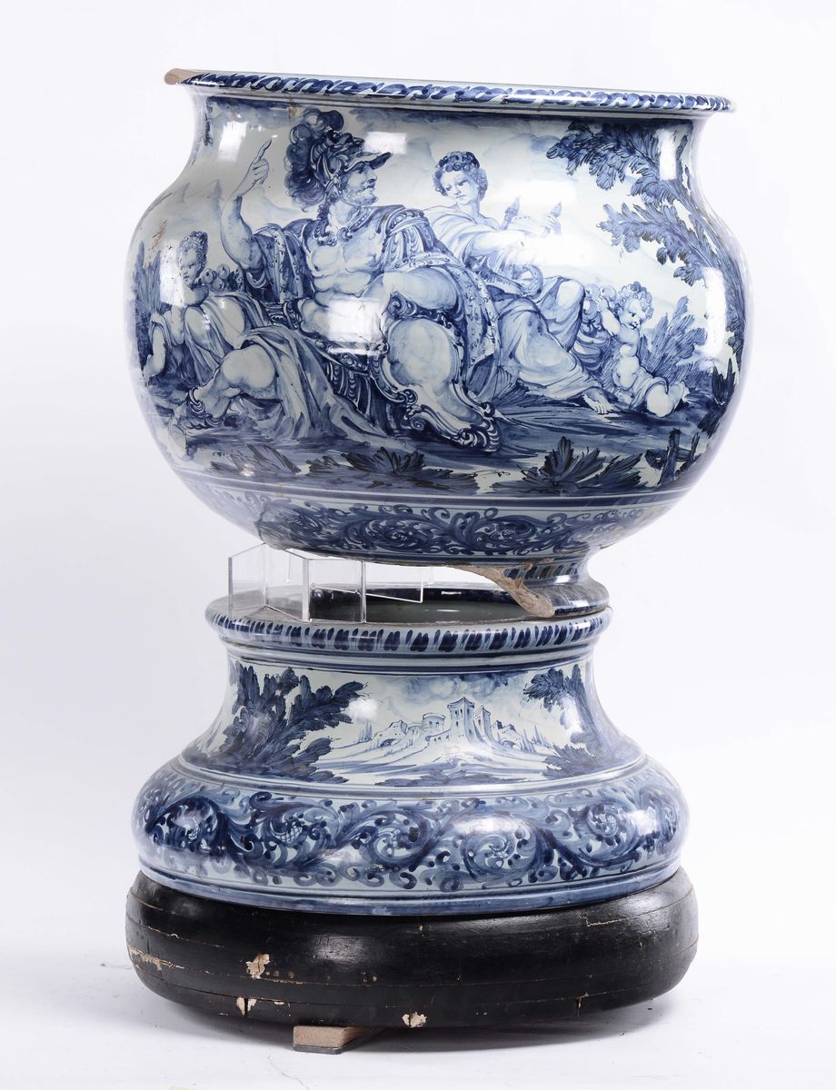 di cui uno bianco e blu, uno ad anfora e uno con figure a rilievo