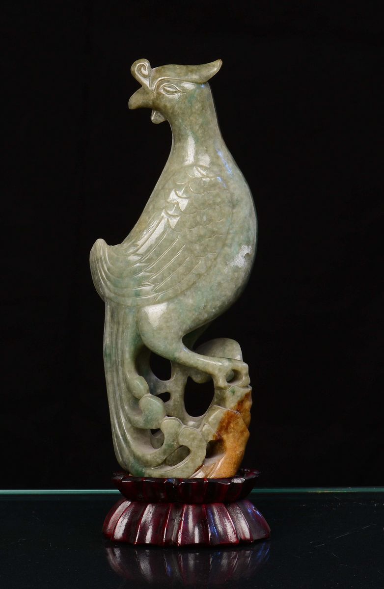 A jadeite sculpture representing a parrot, China, Qing Dynasty, 19th century