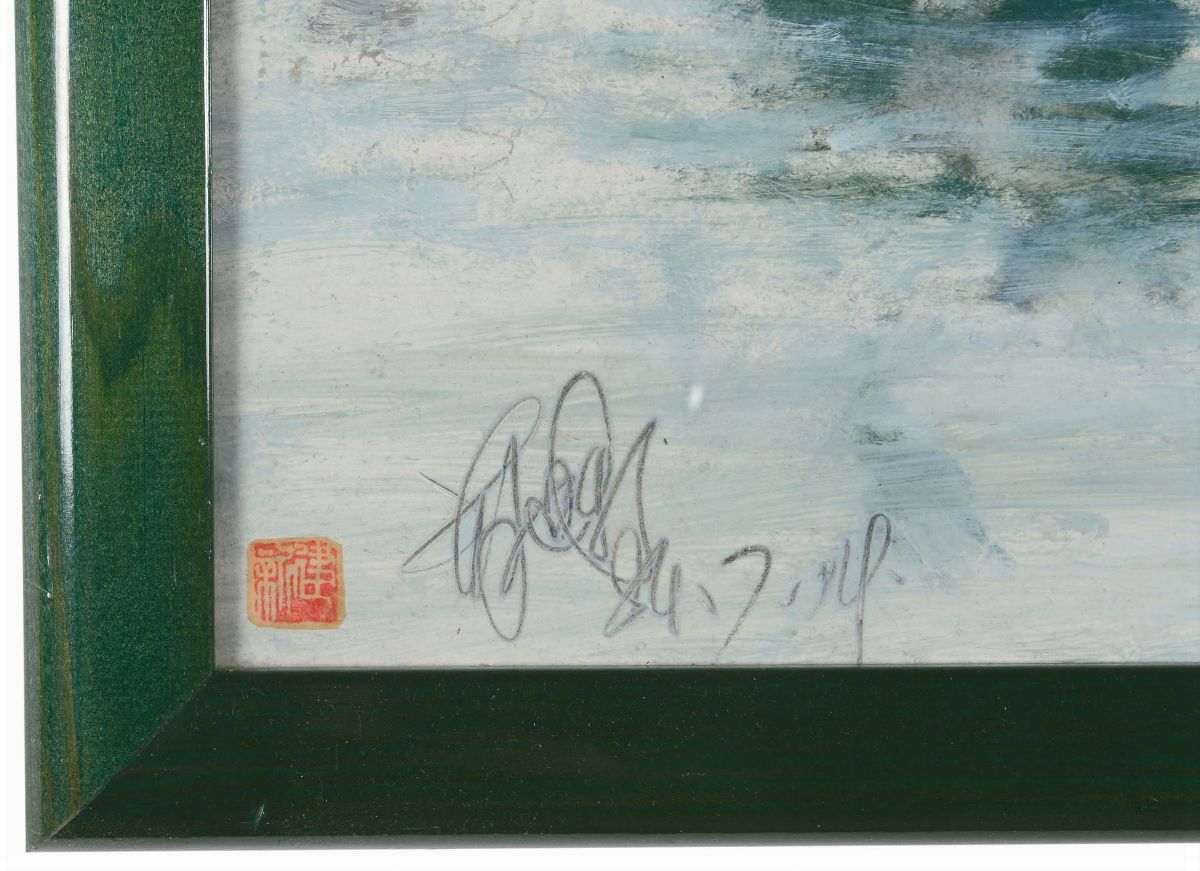 A painting representing an oriental town, China, 20th century
