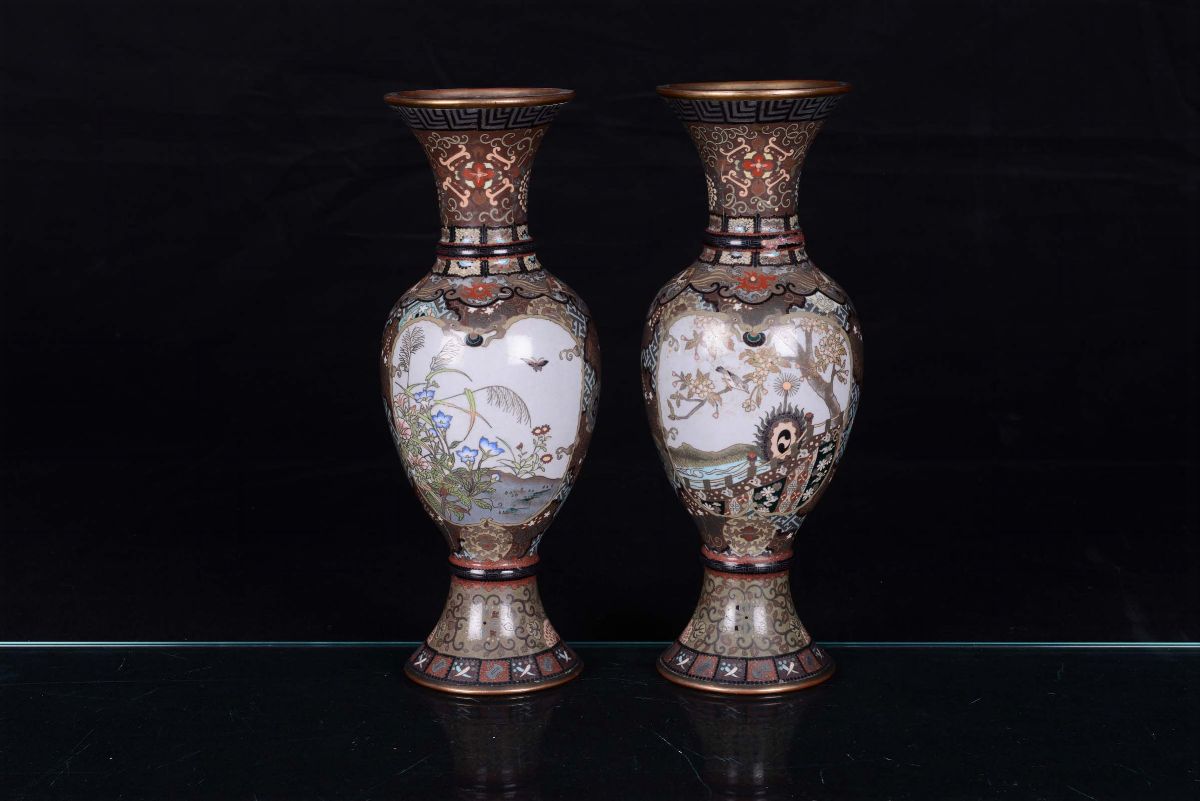 A pair of polychrome enamel vases, Japan, 19th century