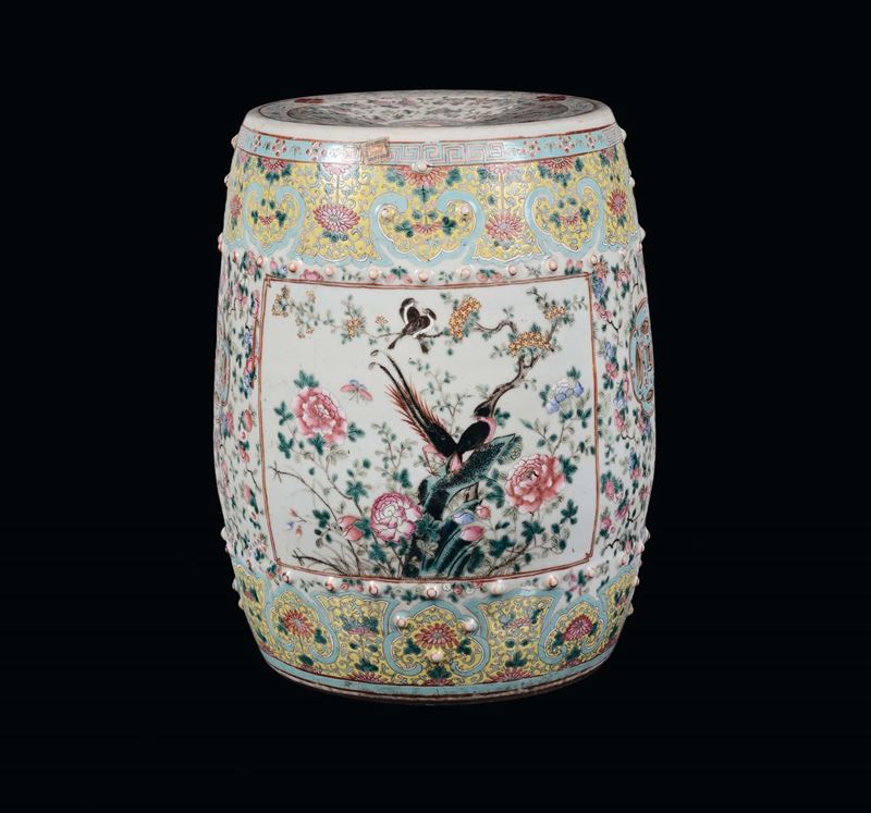 A porcelain seat with polychrome decoration, China, Qing Dynasty, 19th century