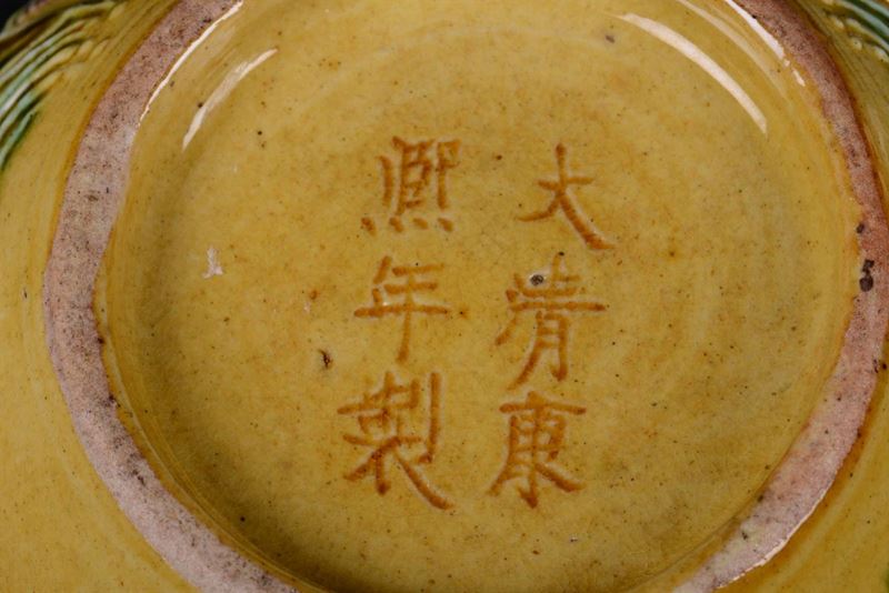 A porcelain vase with yellow background, China, 19th century. Ampoule body, decorated with relief animals and vegetation