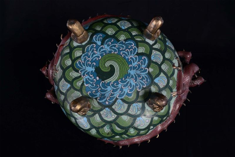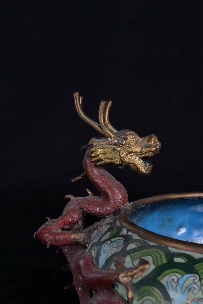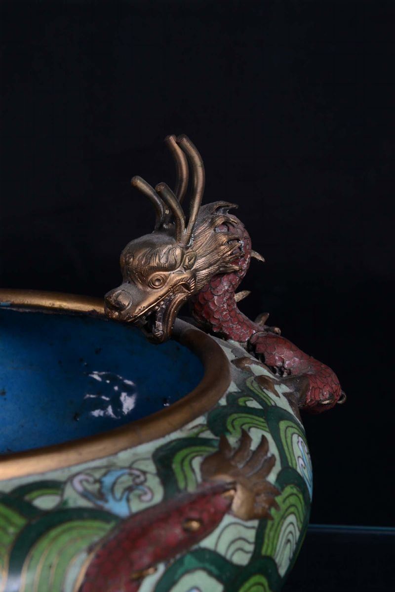 A small cloisonné censer with dragons, China, Qing Dynasty, late 19th century