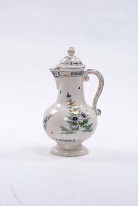 Caffettiera con decoro a tacchiolo in maiolica, XVIII secolo