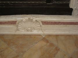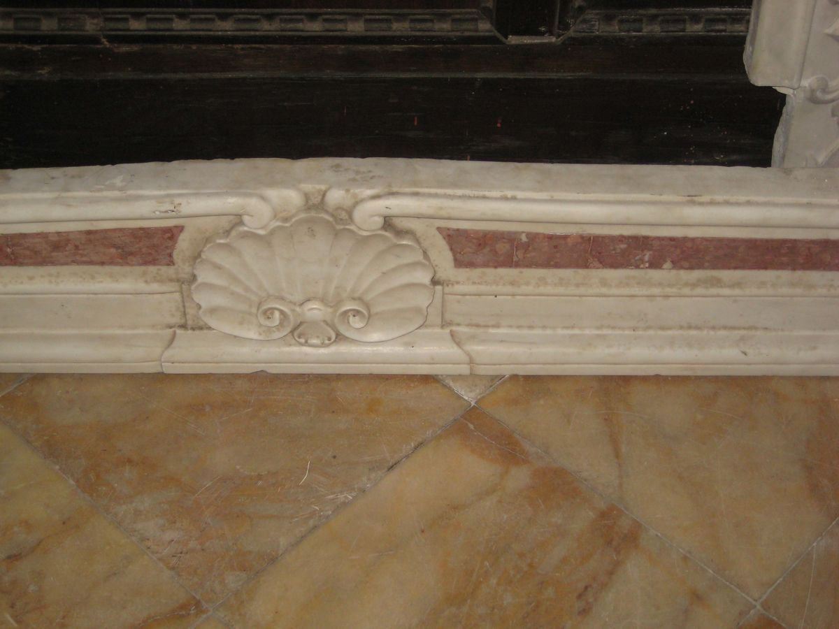 Camino in marmo bianco e rosso