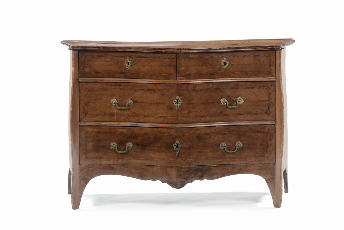 Comò interamente lastronato in noce, XVIII secolo