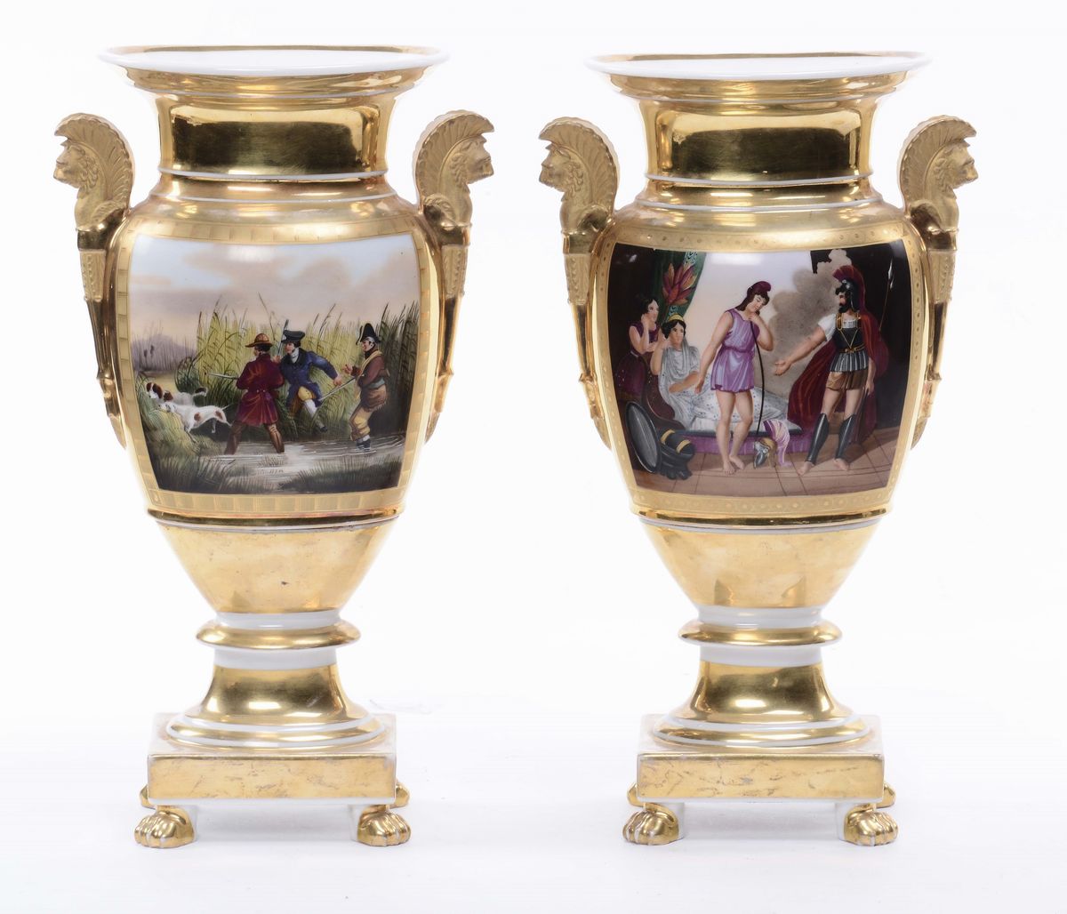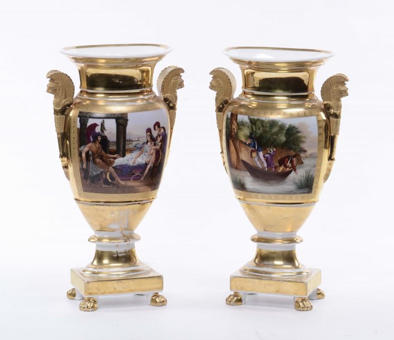 Coppia di vasi Impero di forma schiacciata con anse raffiguranti leoni alati