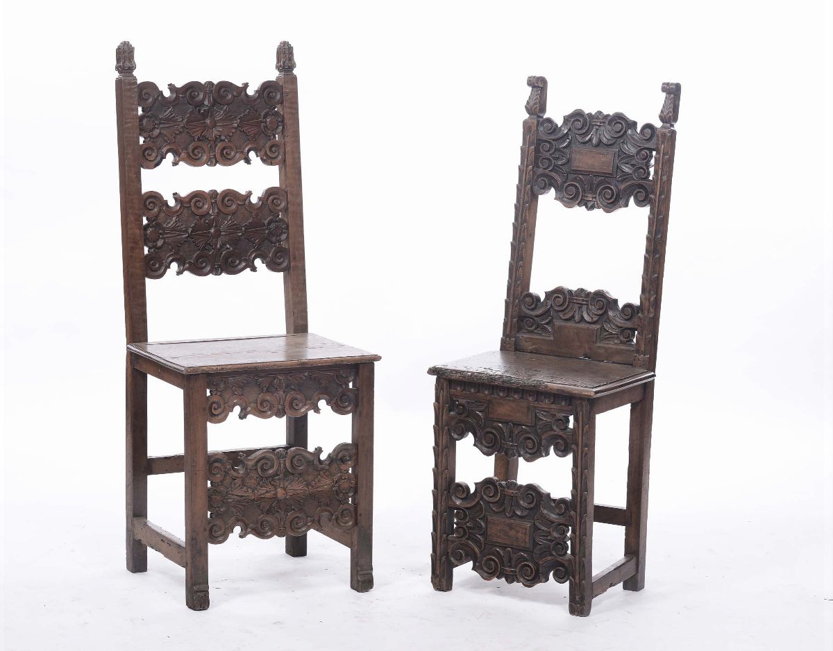 Due sedie simili a cartelle in noce, Brescia XVII secolo