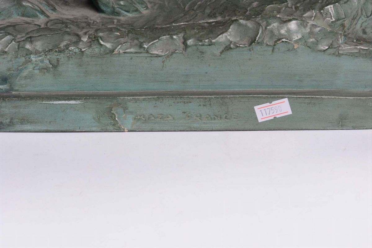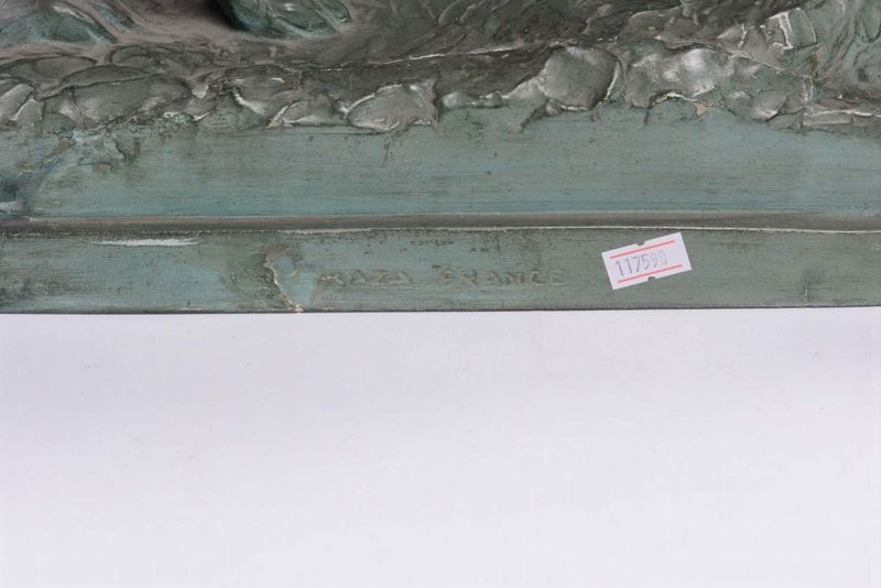 gruppo in gesso a patina scura con volpi, cm 50x31