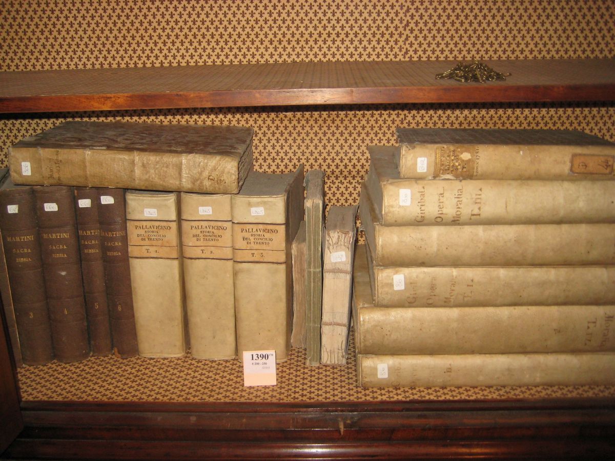 Bologna 1748, nel lotto anche Martini - Bibbia 6 voll., Pallavicino - Storia del concilio di Trento 3 voll. 1664 e altri volumi religiosi