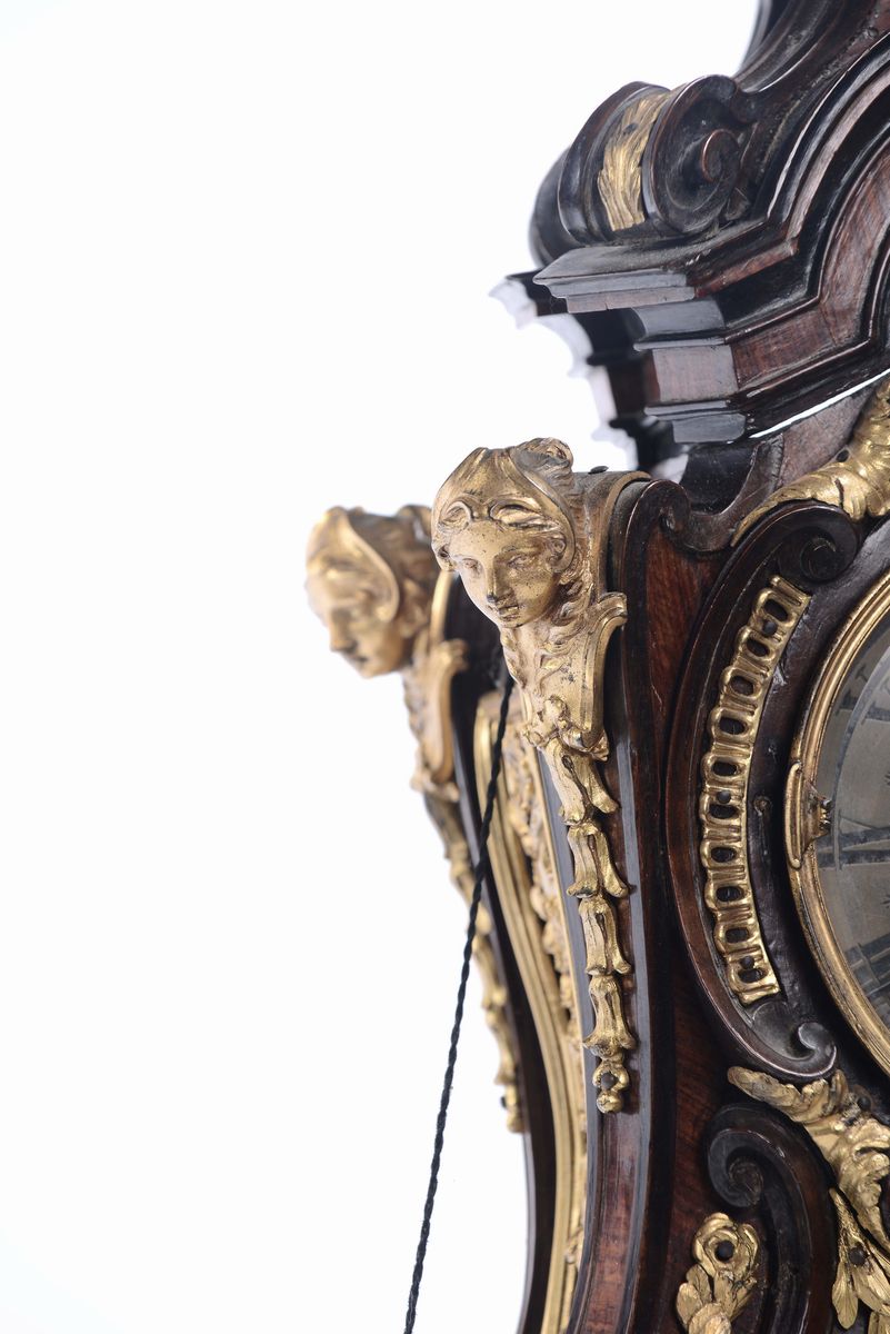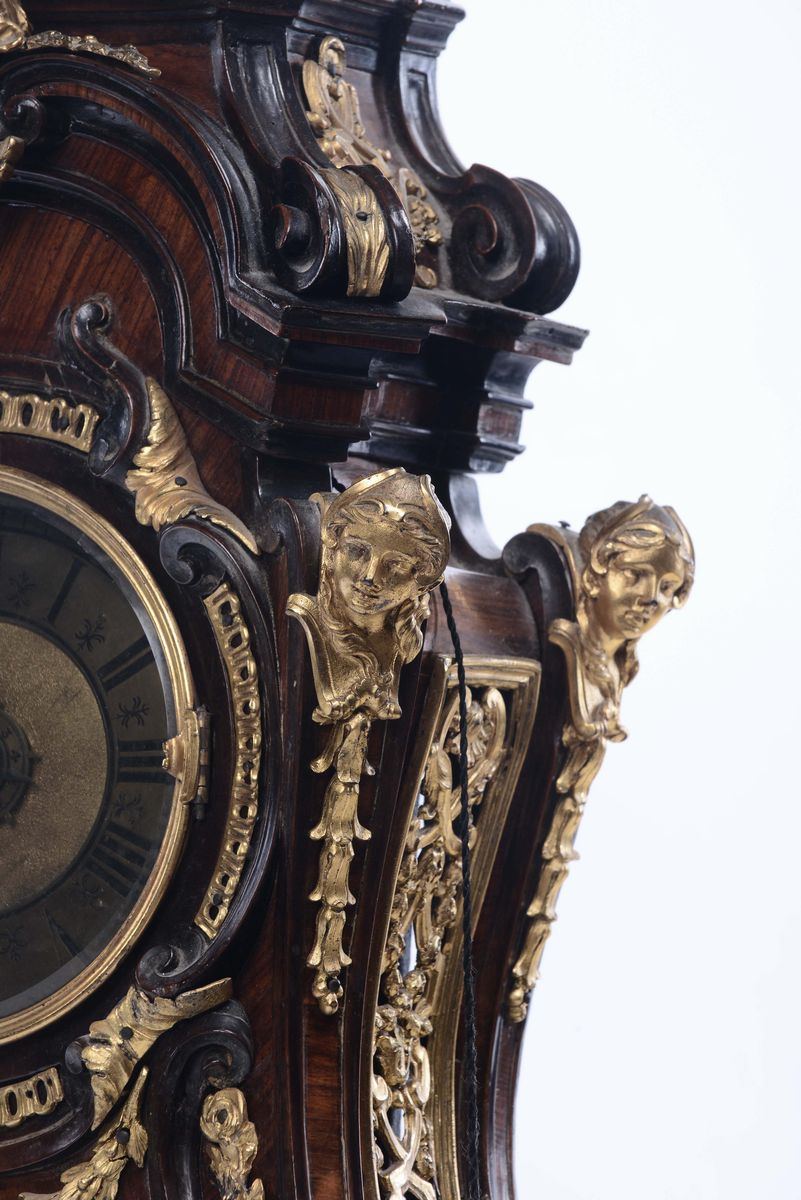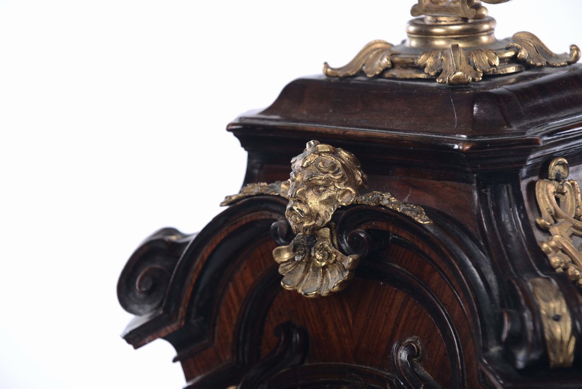 Pendola lastronata in ebano e bois de rose, Roma XVIII secolo
