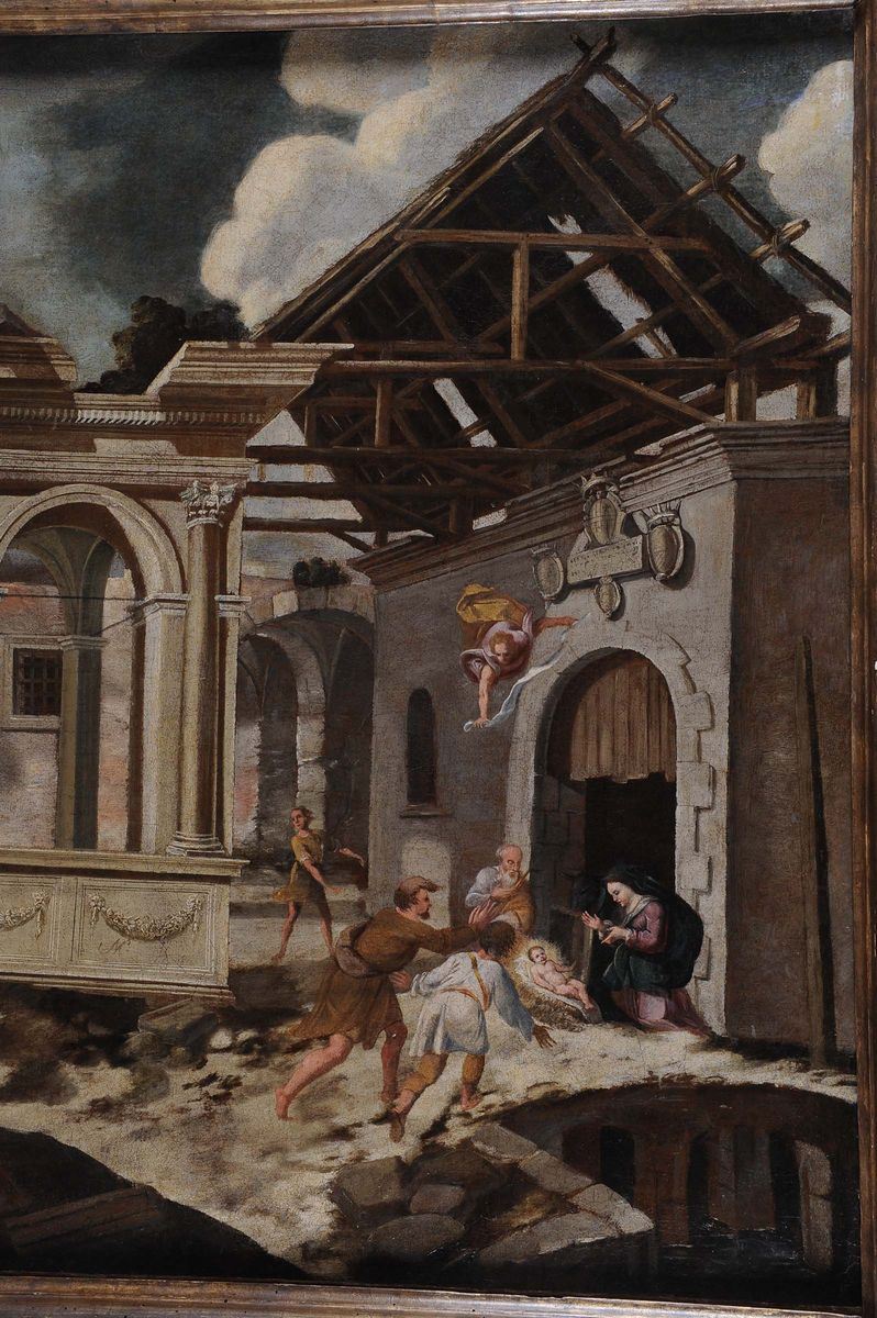 Scuola Francese del XVII secolo Architetture con adorazione dei pastori