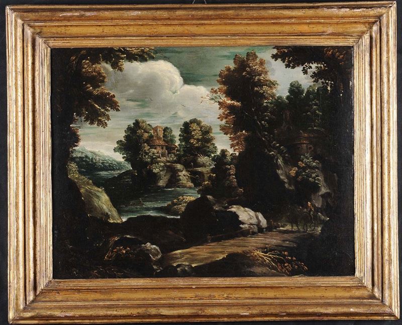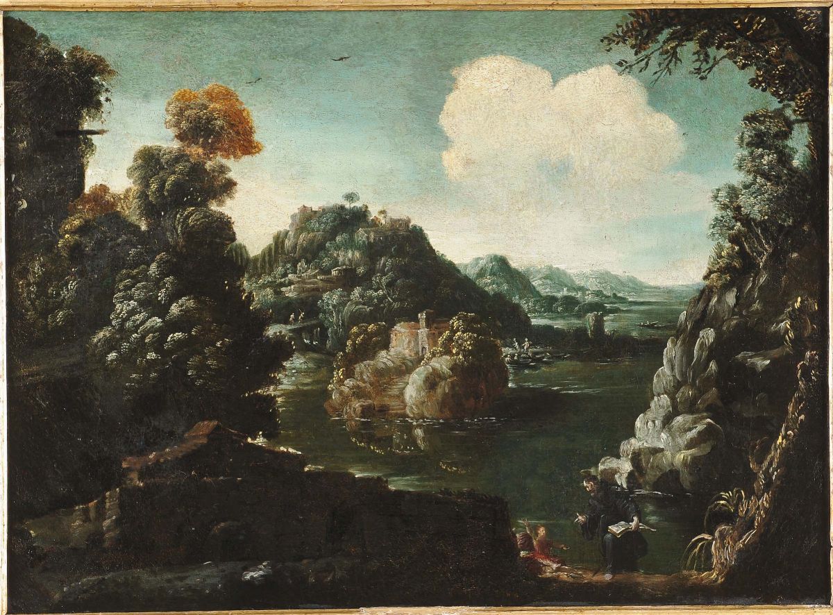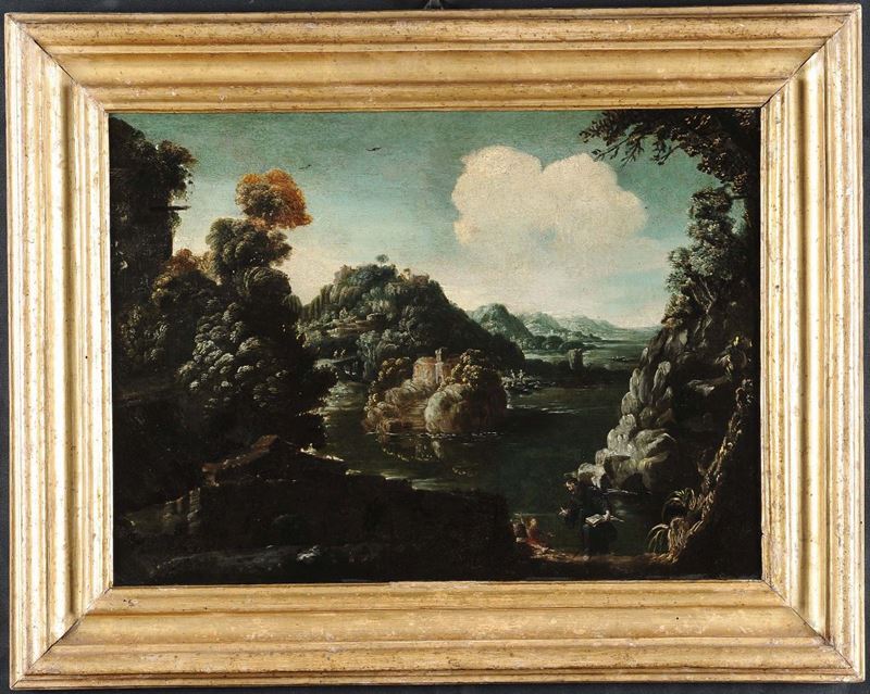 Scuola Romana del XVII secolo Paesaggi con figure