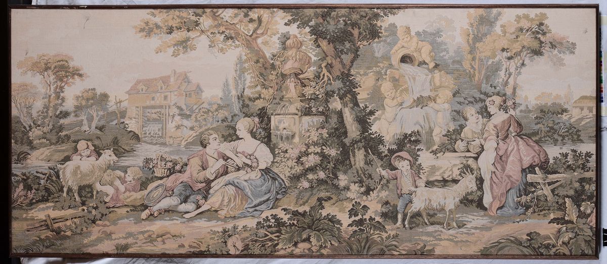 cm 68x70, nel lotto anche arazzo raffigurante scene galanti, cm 72x170