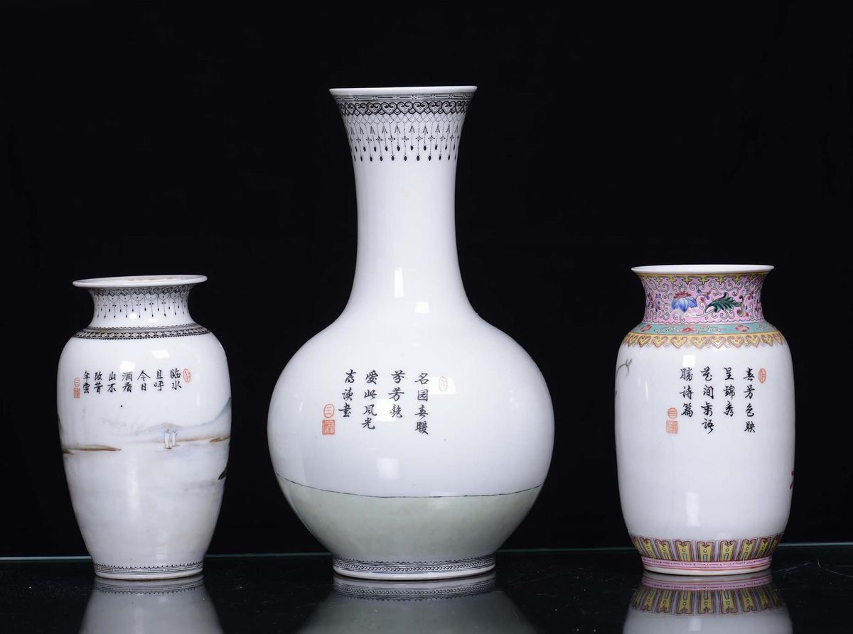 Three different porcelain vases China, Republic