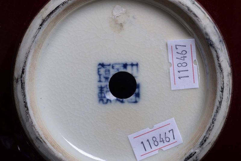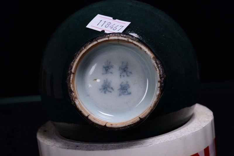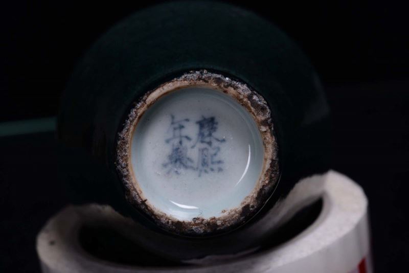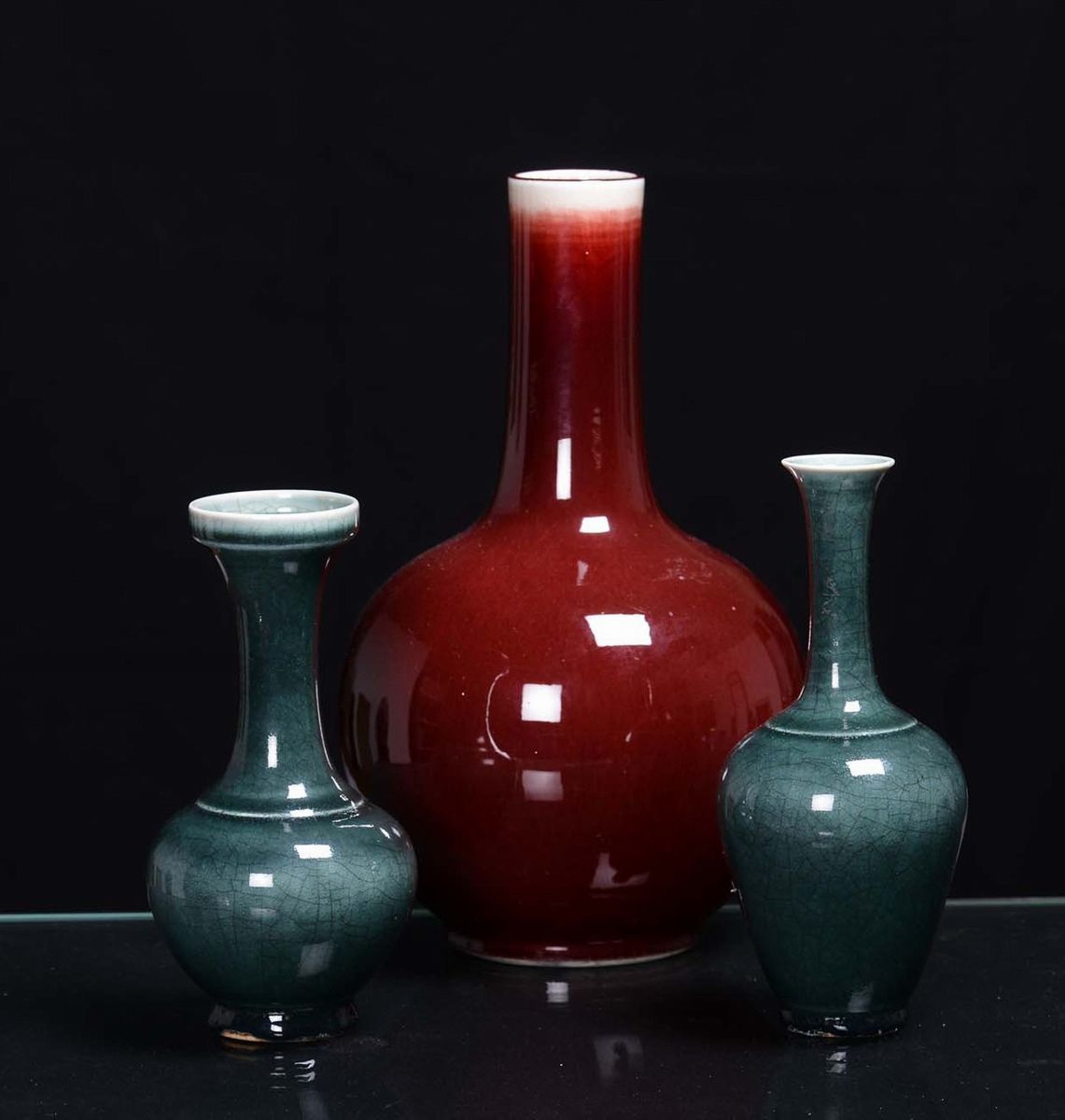 Two small porcelain green and red monochrome vases, China, 20th century