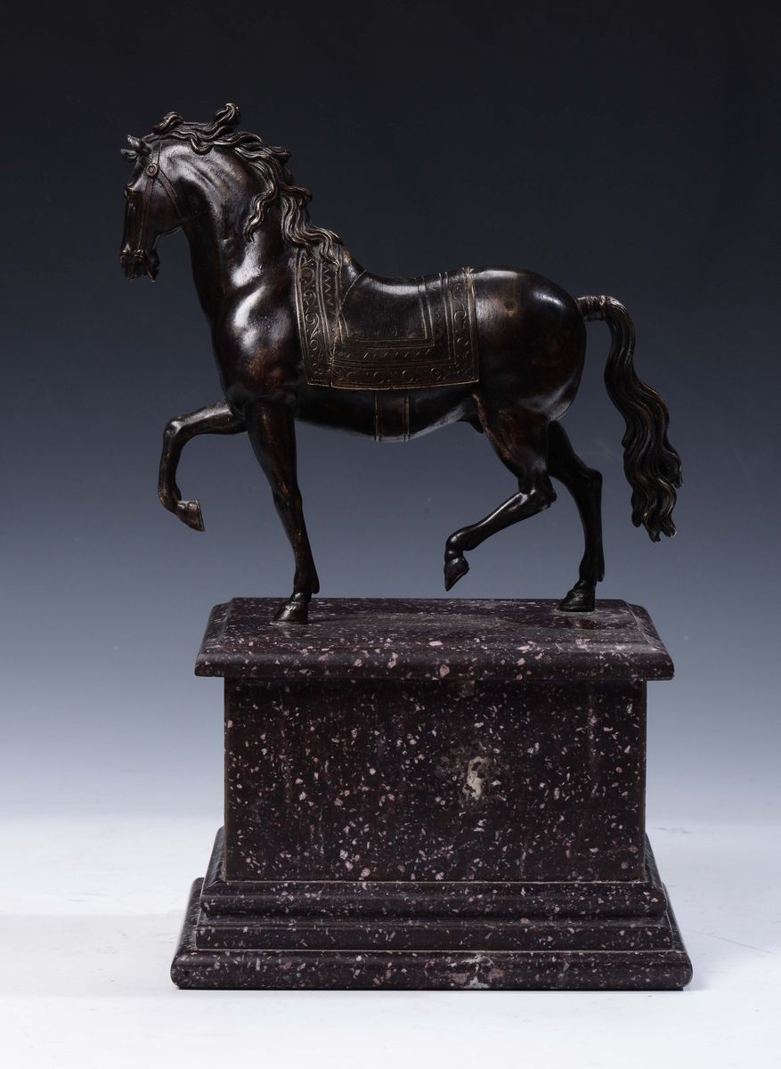bronzo fuso e cesellato, base in porfido, cm 31x15x18