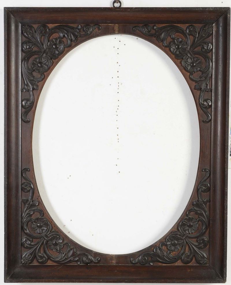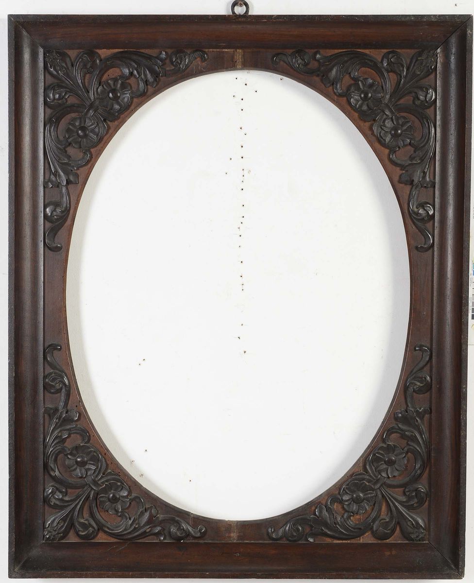 luce ovale contornata da fregi scolpiti a motivo vegetale, cm 67x51,5 (83x68)