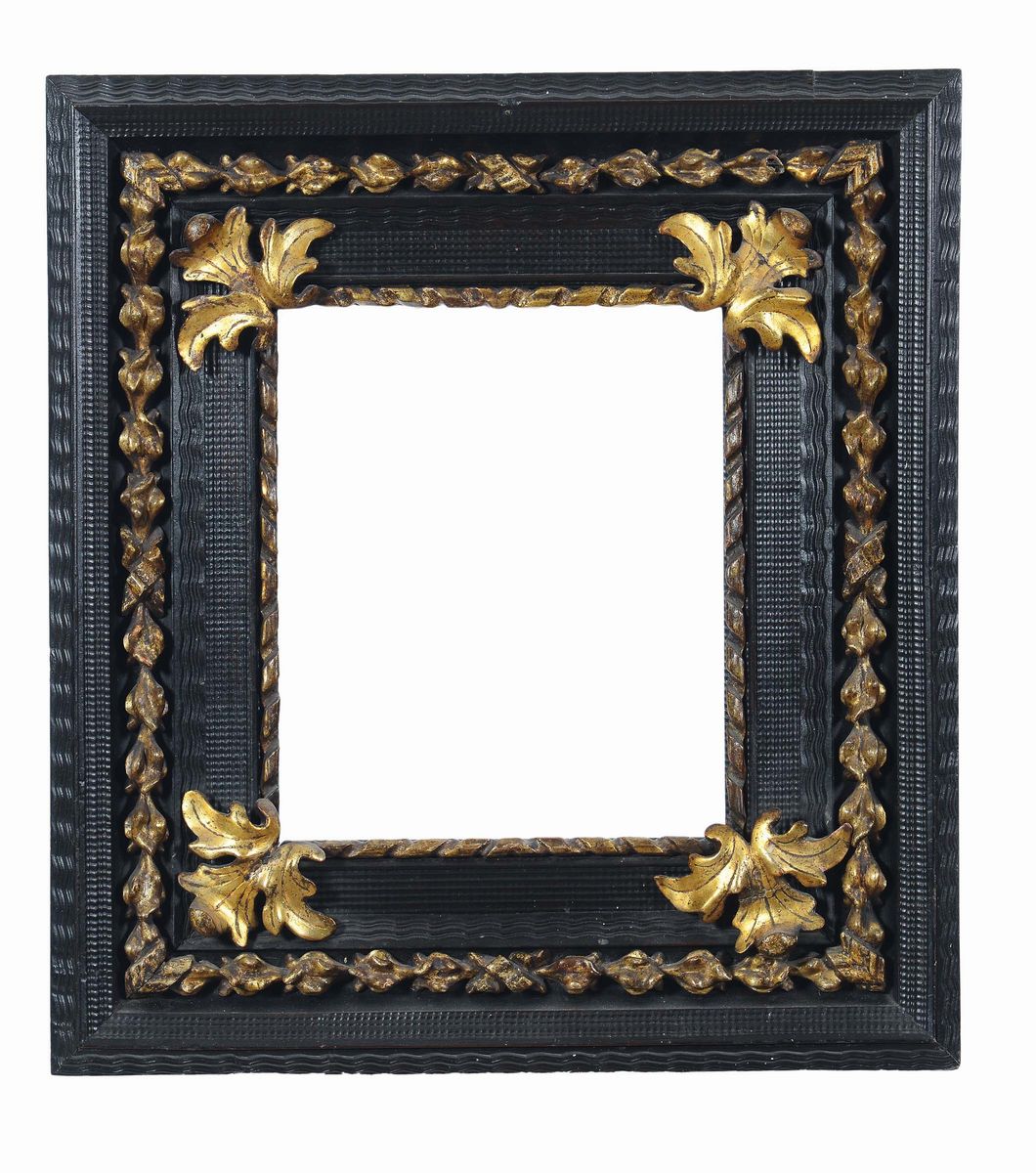 Cornice guillochè con elementi dorati, XVII secolo