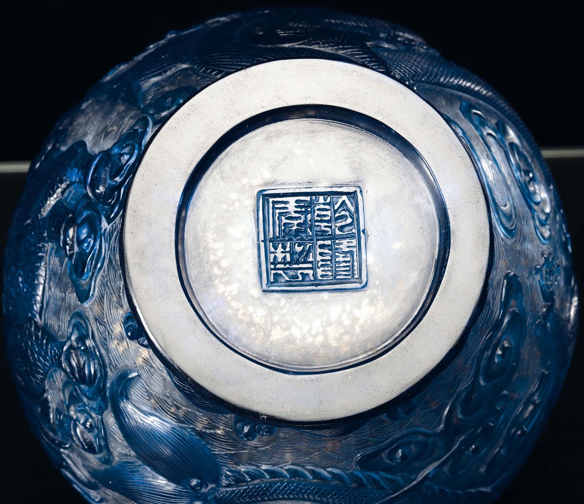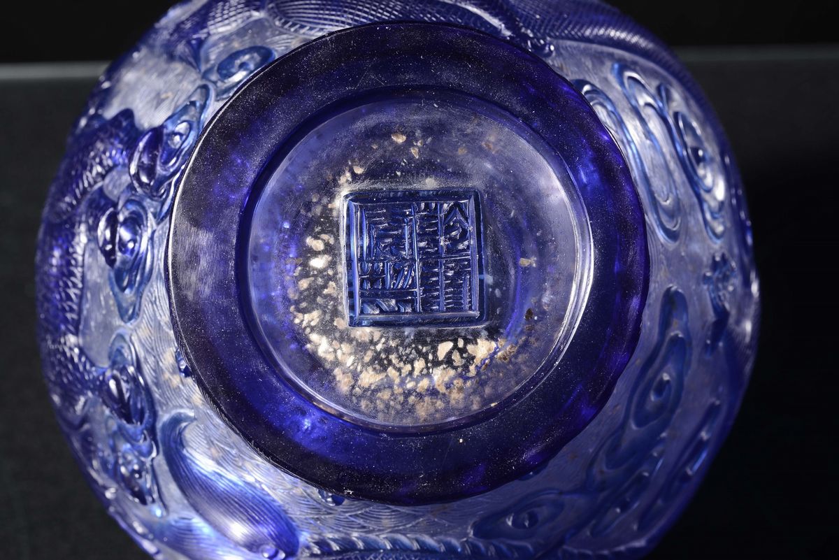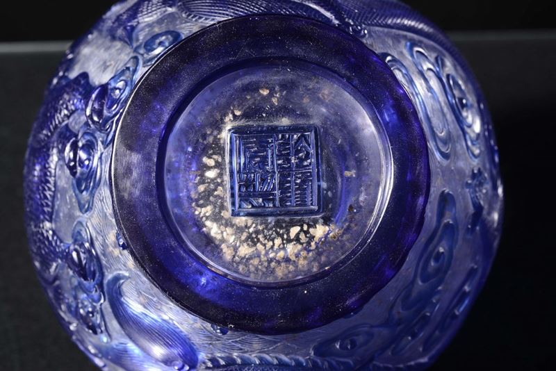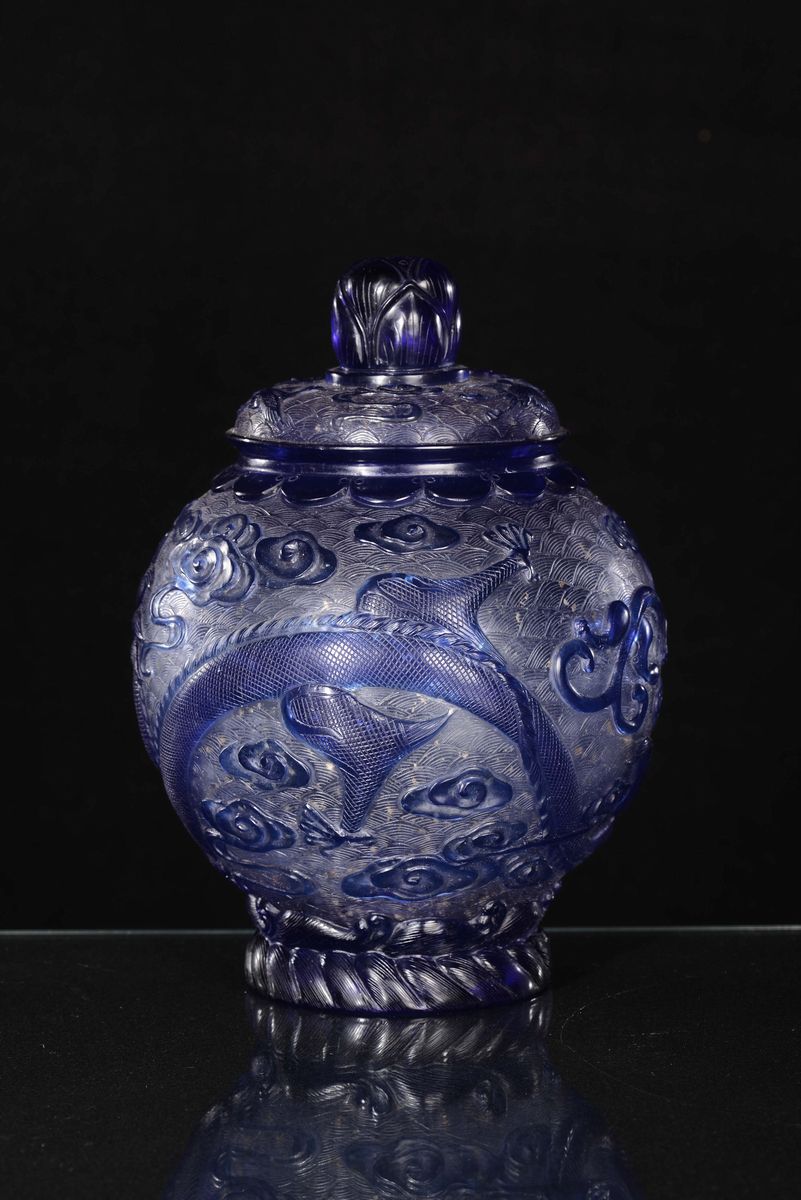 A Beijing glass form grinding potiche, double color blue, China, Republic, 20th century, apocryphal qianlong mark