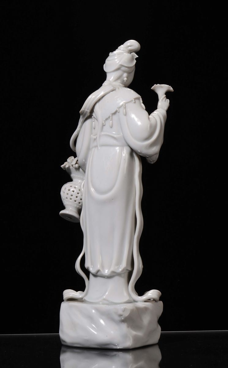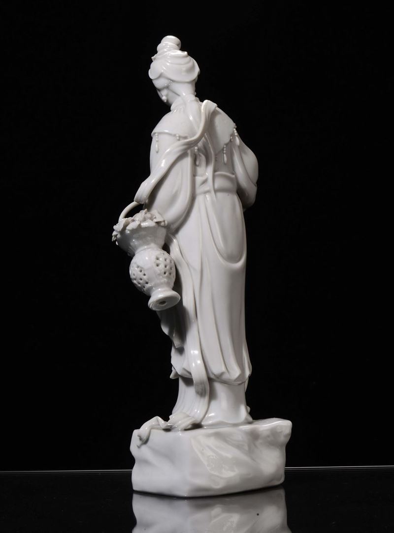 A Blanc de Chine porcelain female figure with basket and flower, China, Republic, early 20th century
