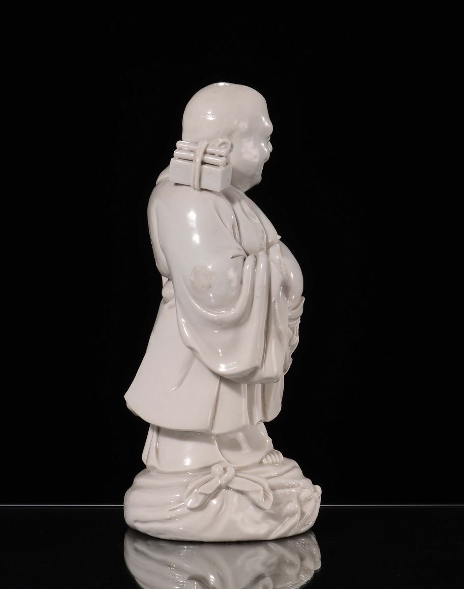 A Blanc de Chine porcelain figure of Budai, Dehua, China, Qing Dynasty,18th century