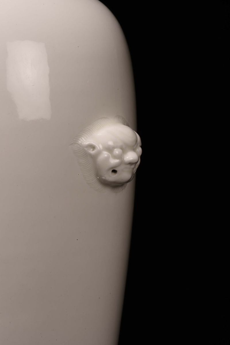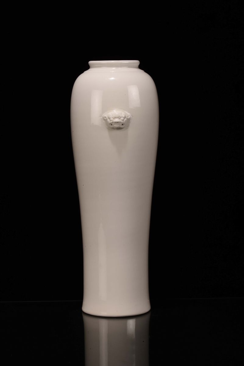 A Blanc de Chine porcelain vase with relief masks, Dehua, China, late 17th century