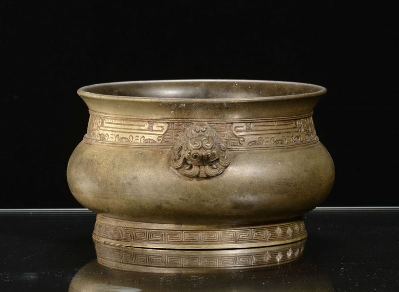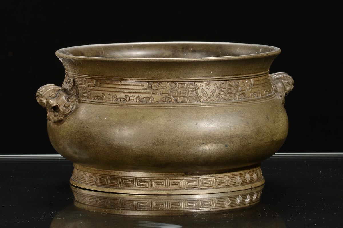 A bronze carved censer, China, Ming Dynasty, 17th centuryapocryphal Xuande mark