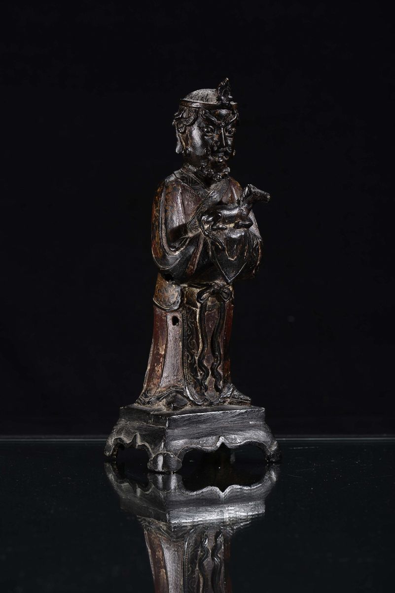 A bronze “dignitary with animal” sculpture , China, Ming Dynasty, 17th century