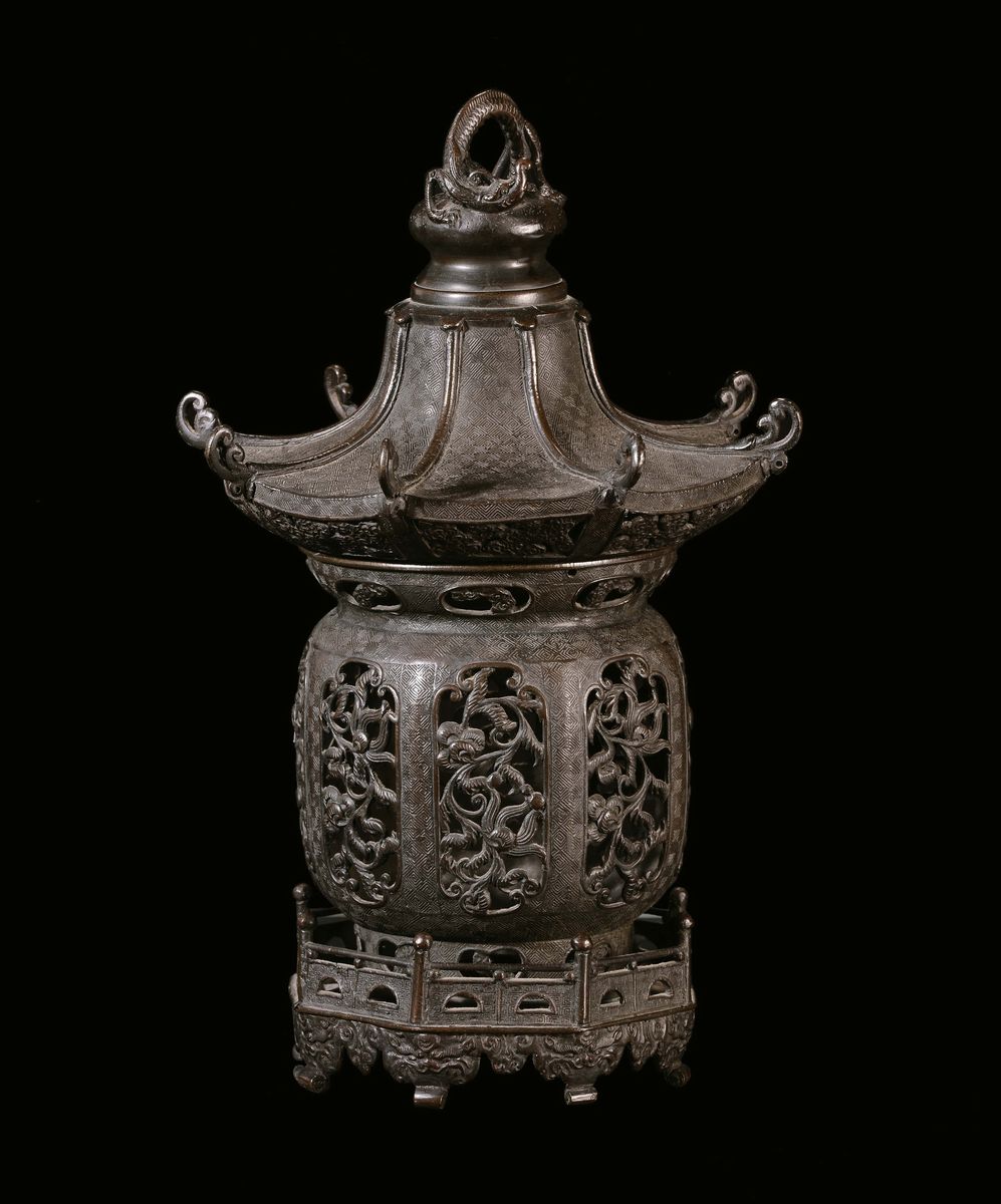 A bronze “Pagoda” incense burner, China, Ming Dynasty, apocryphal Xuande mark