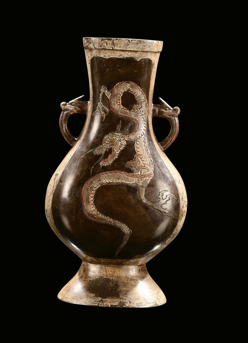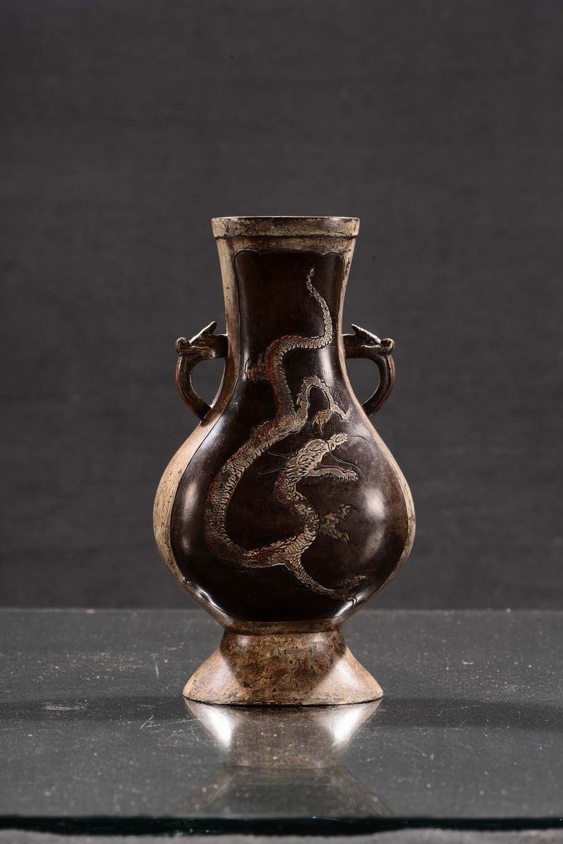 A bronze vase with gilt decorations with dragon, China, Qing Dynasty, 18th century