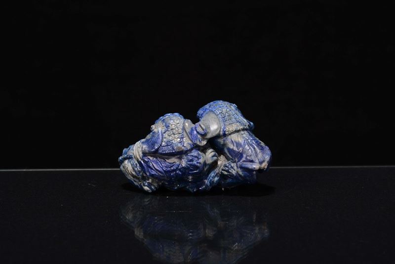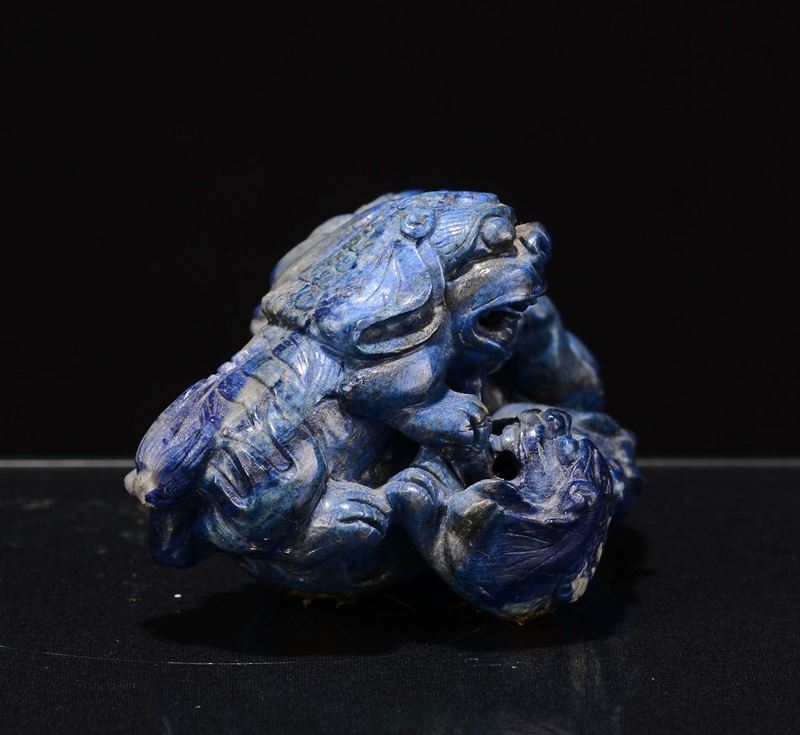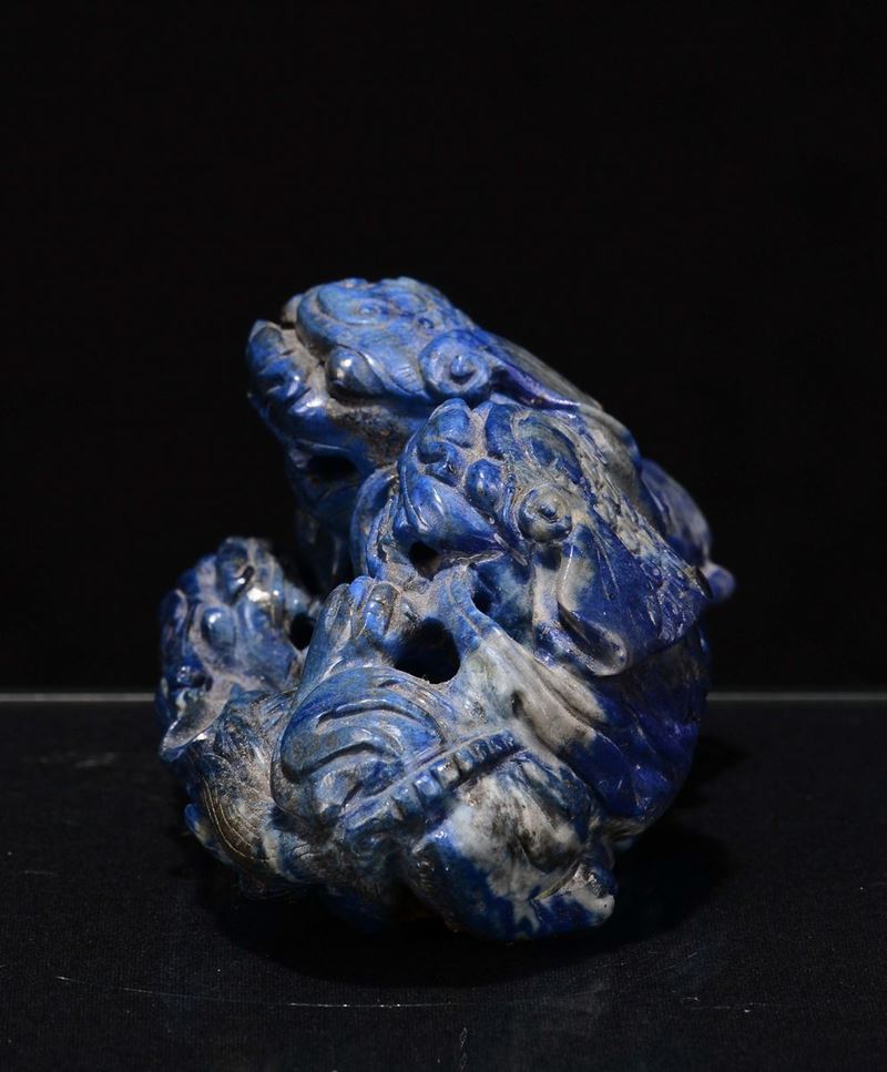 A carved lapis lazuli “Pho dog” group, China, Qing Dynasty, Jiaqing Period (1796-1820)