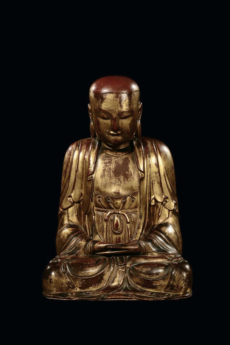 A carved wood Buddha, China, Ming Dynasty, 17th century