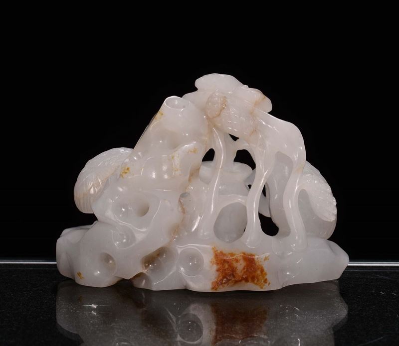 A Celadon white jade “birds and flowers” group, China, Qing Dynasty, 18th century