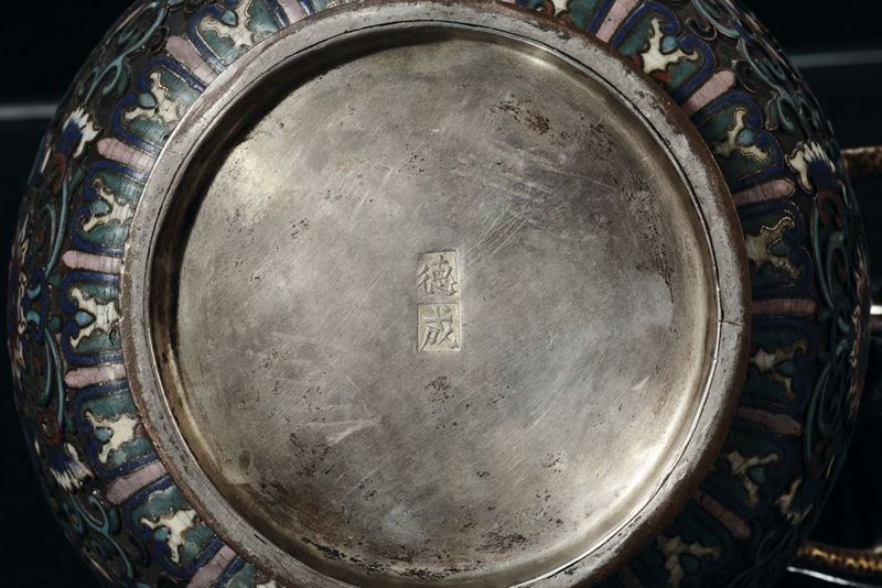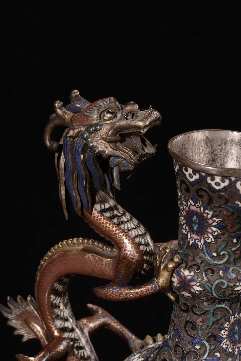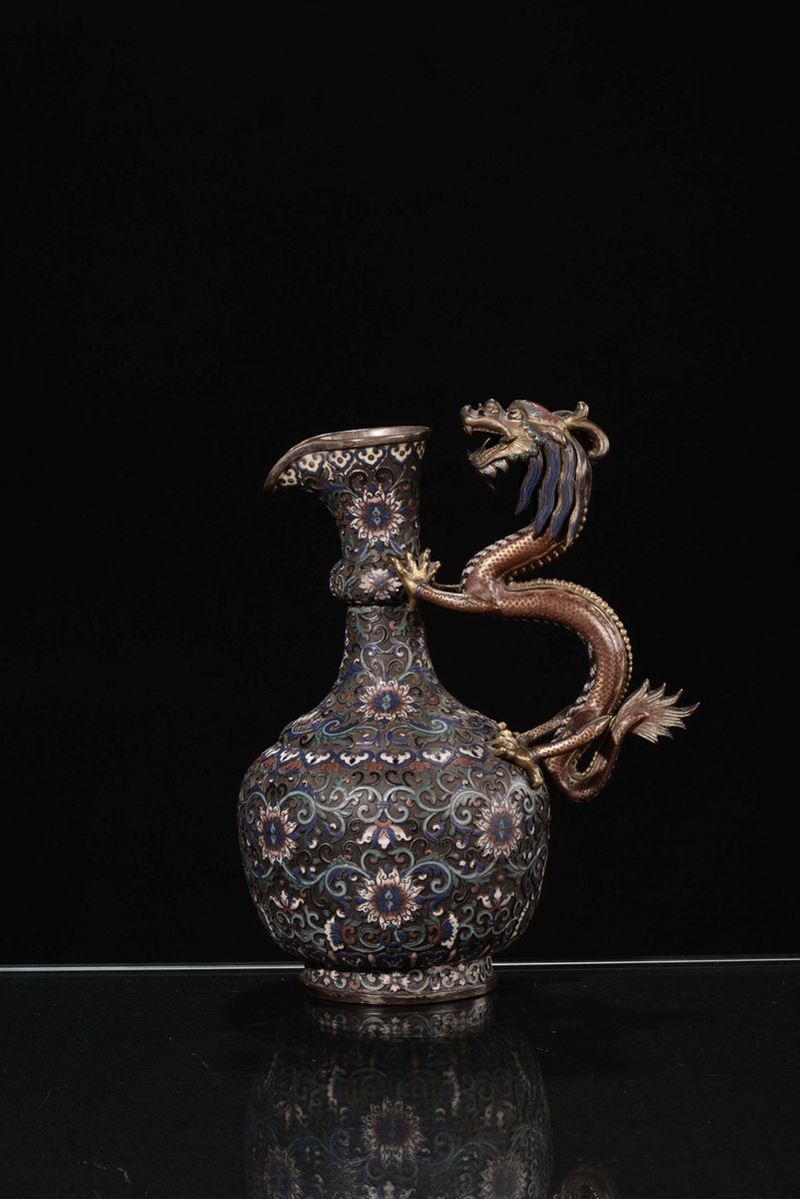 A cloisonné and enamel jug with “dragon” handle, China, Qing Dynasty, 19th century