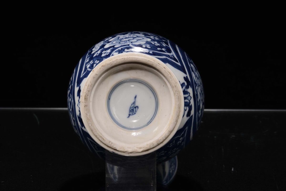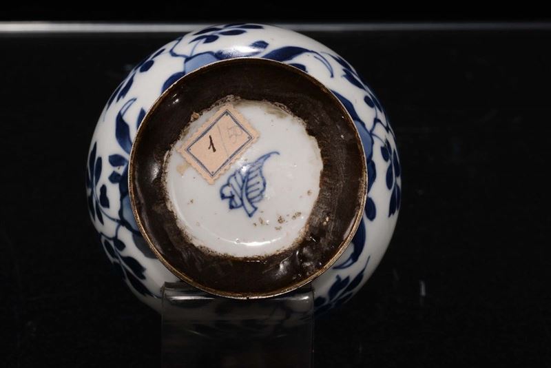 A collection of nine white and blue porcelain ampoule vases, China, Qing Dynasty, 18th century