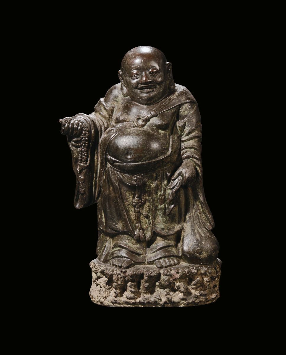 A dark-bronze Budai, China, Ming Dynasty, 17th century