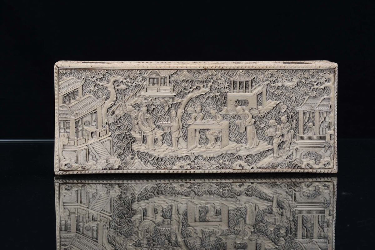 A fine carved rectangular ivory box, China, Qing Dynasty, 19th century