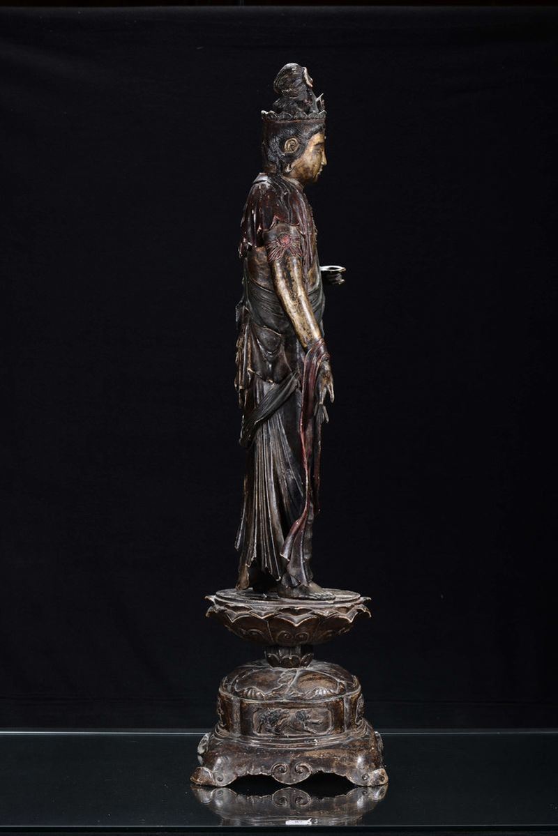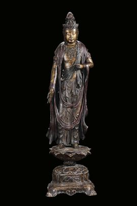 A gilt and lacquered bronze “divinity” sculpture, China, Qing Dynasty, Qianlong Period (1736-1795)