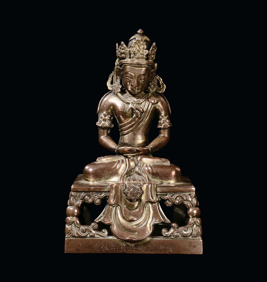 A gilt-bronze “Amitayus” sculpture, China, Qing Dynasty,Qianlong Period (1736-1795)