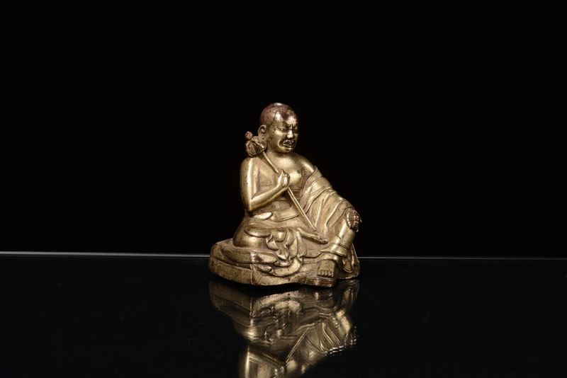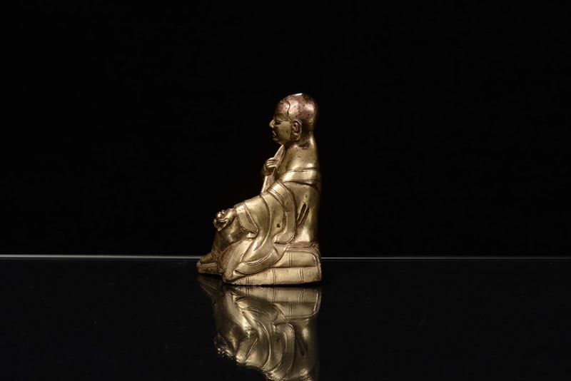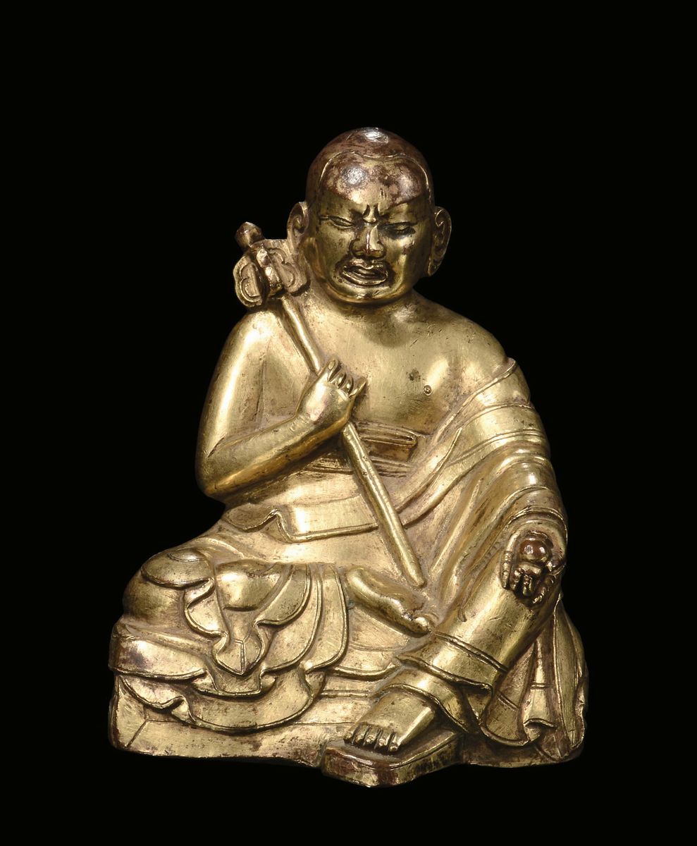 A gilt-bronze “sitting monk” sculpture, Tibet, 17th century