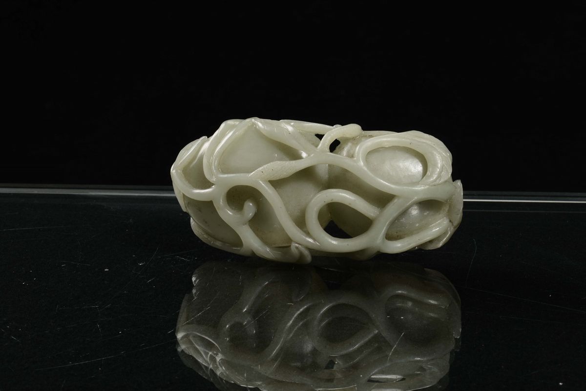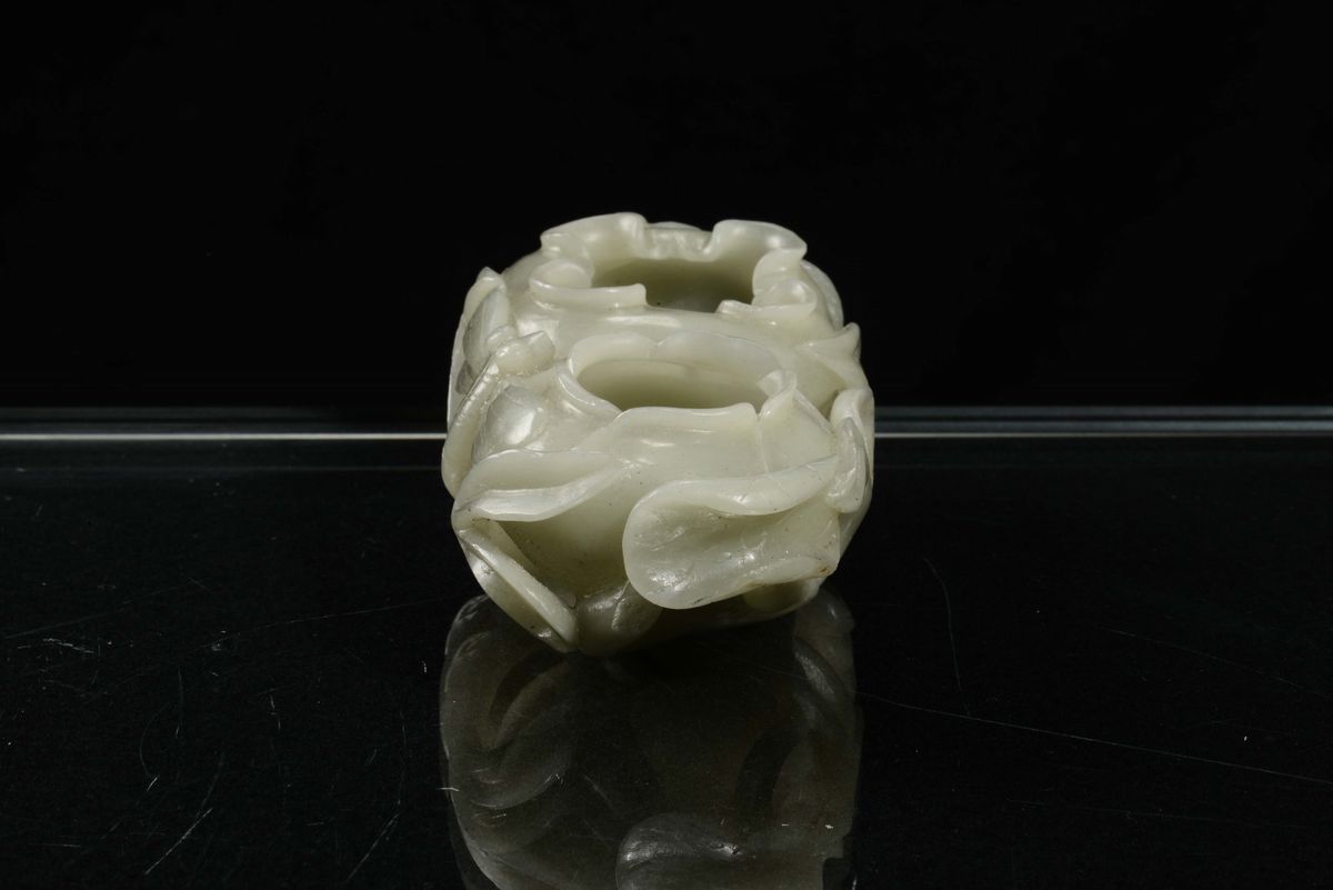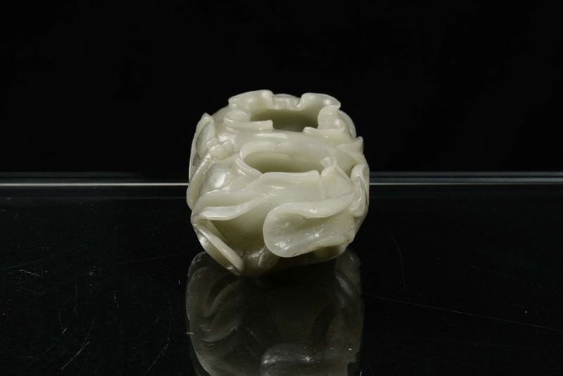 A green Celadon jade “flowers” inkwell, China, Qing Dynasty, 19th century