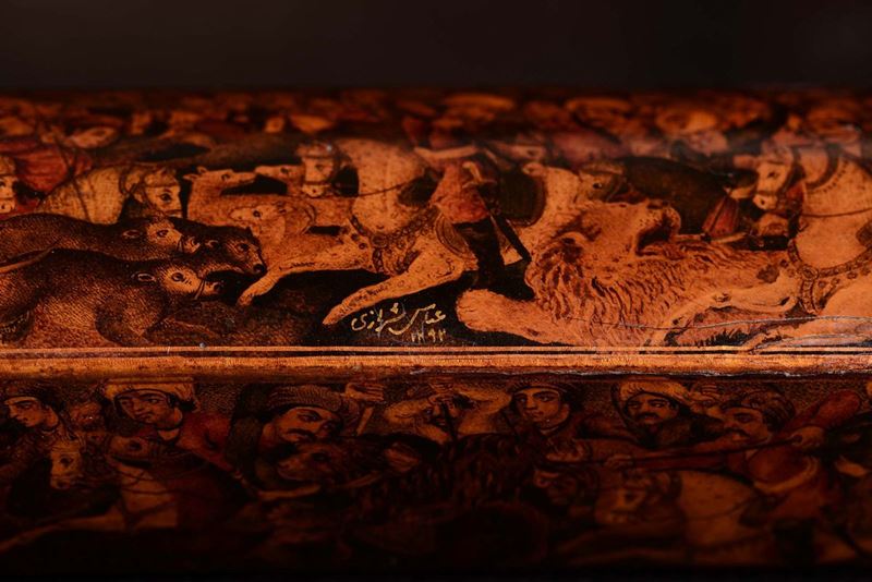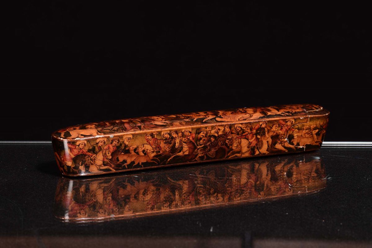 A lacquered box decorated with battle scenes, Asia Minor, 19th century