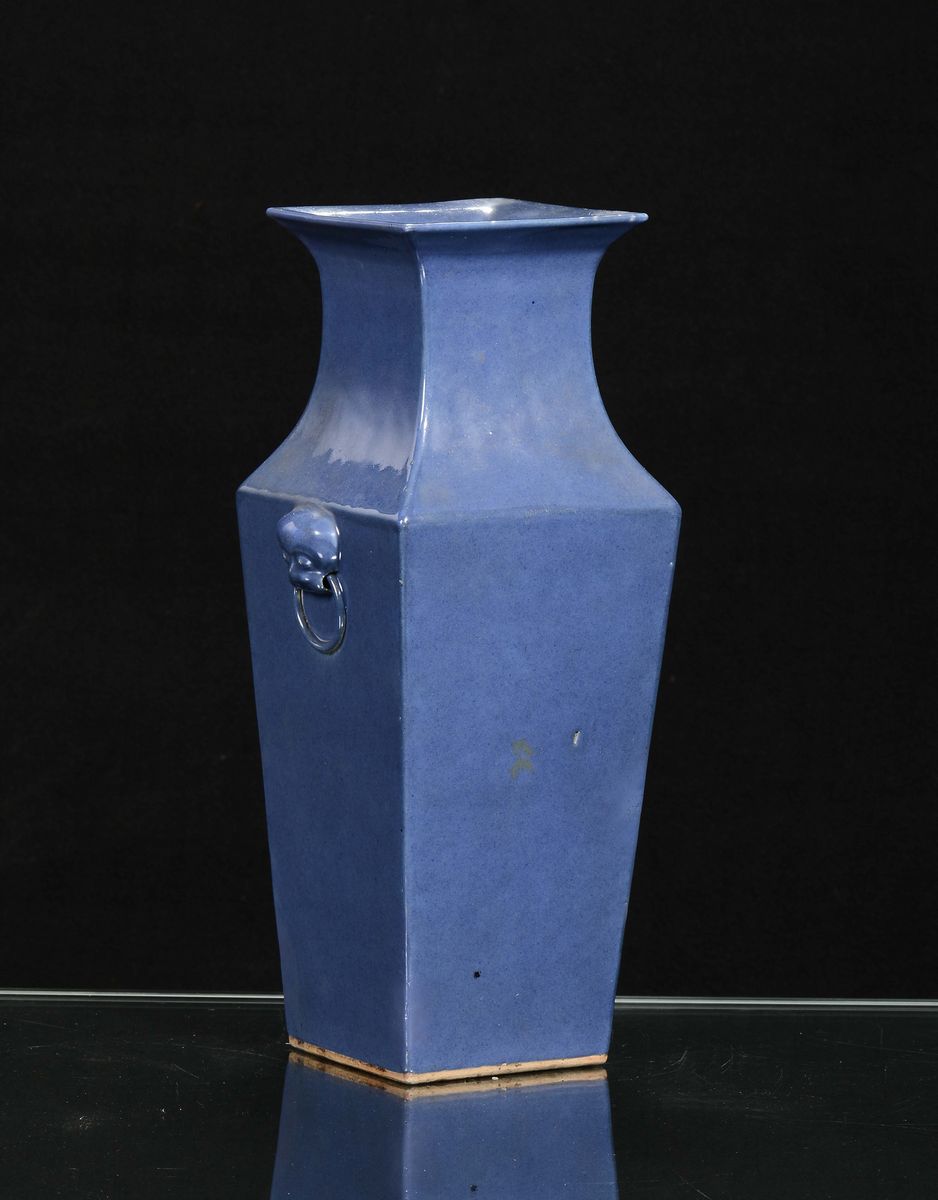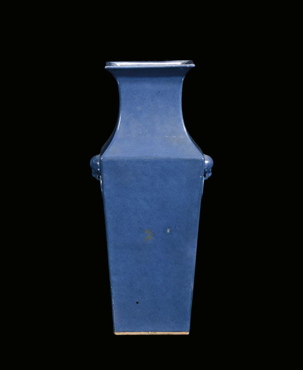 A monochrome blue square-section porcelain vase, China, Qing Dynasty, 19th century