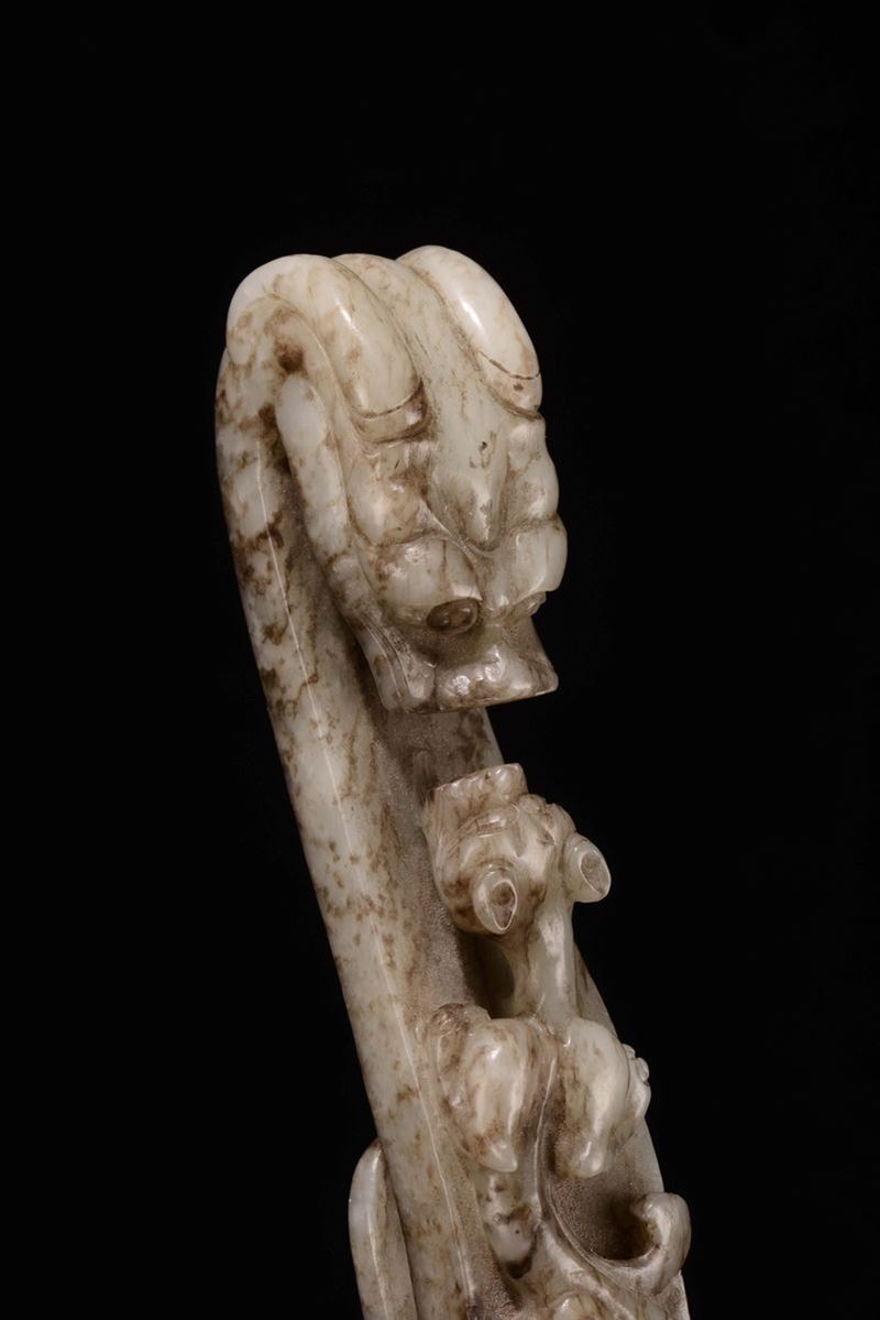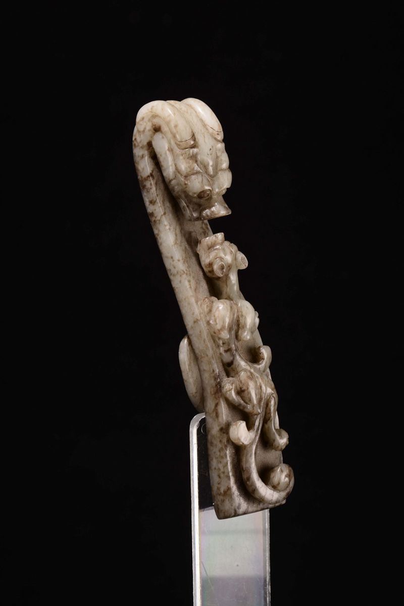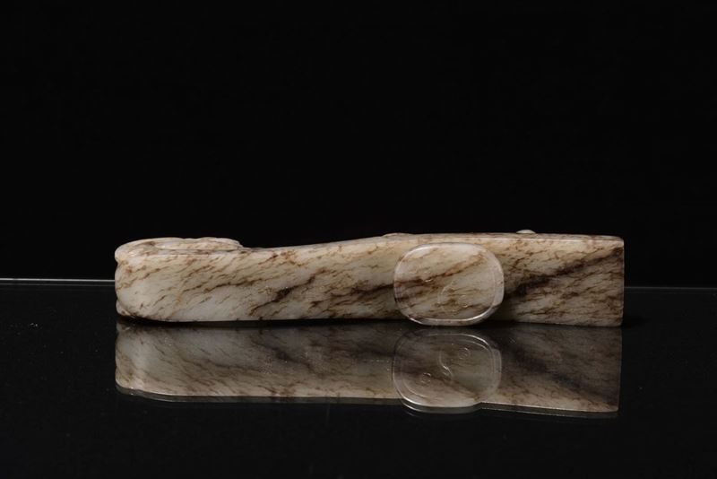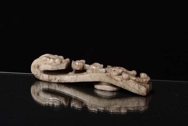 A mutton-fat jade belt hook, China, Ming Dynasty, 17th century
