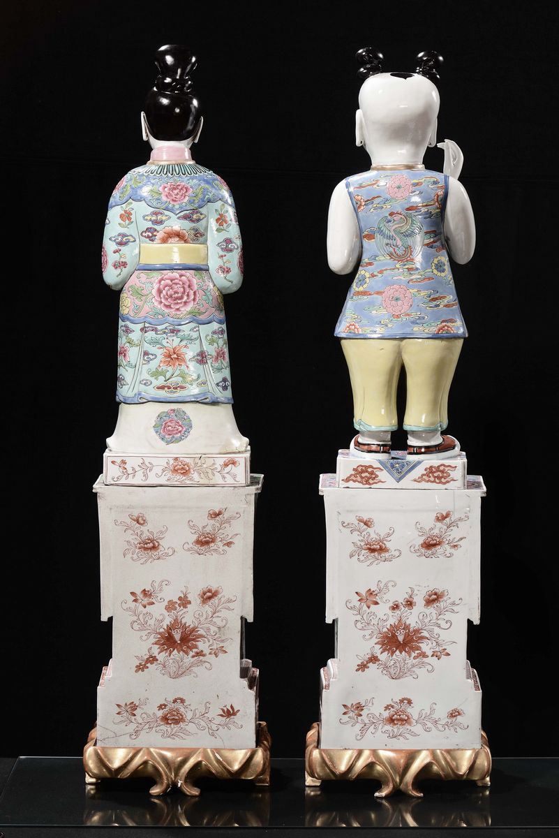 A pair of large Famille-Rose porcelain figures, Samson, France 19th century