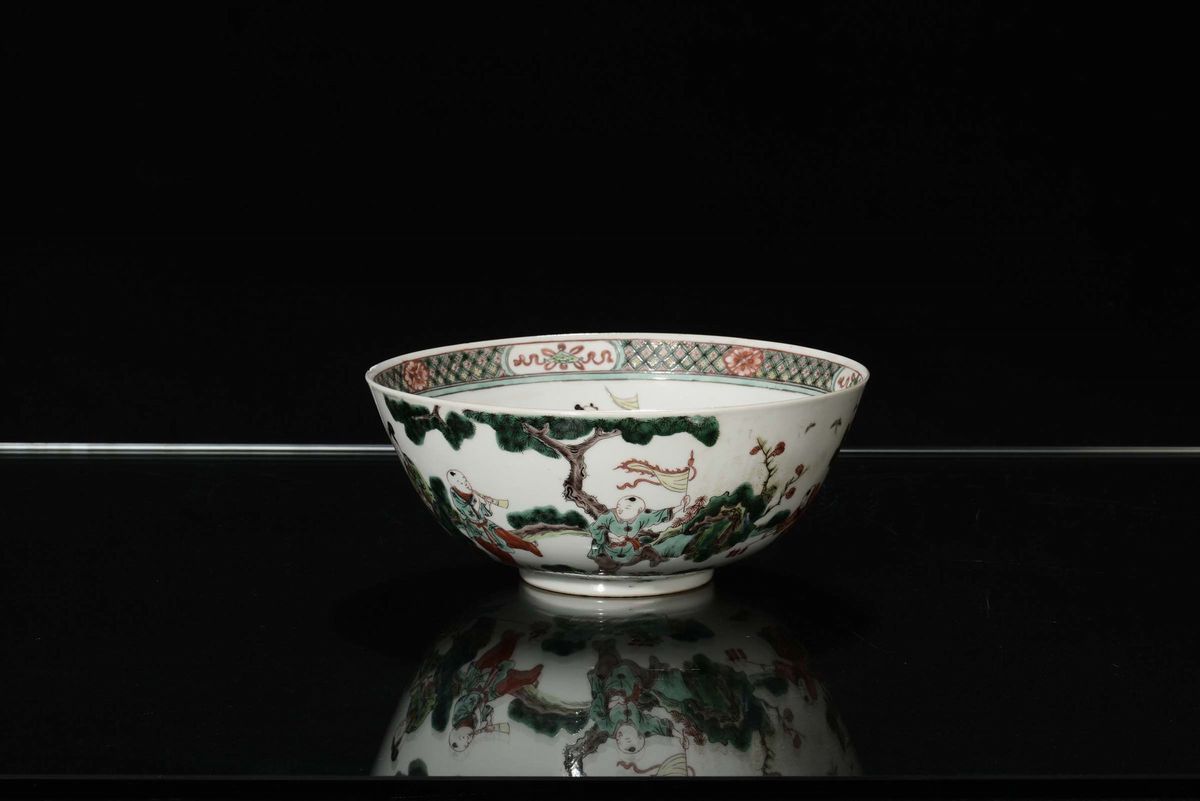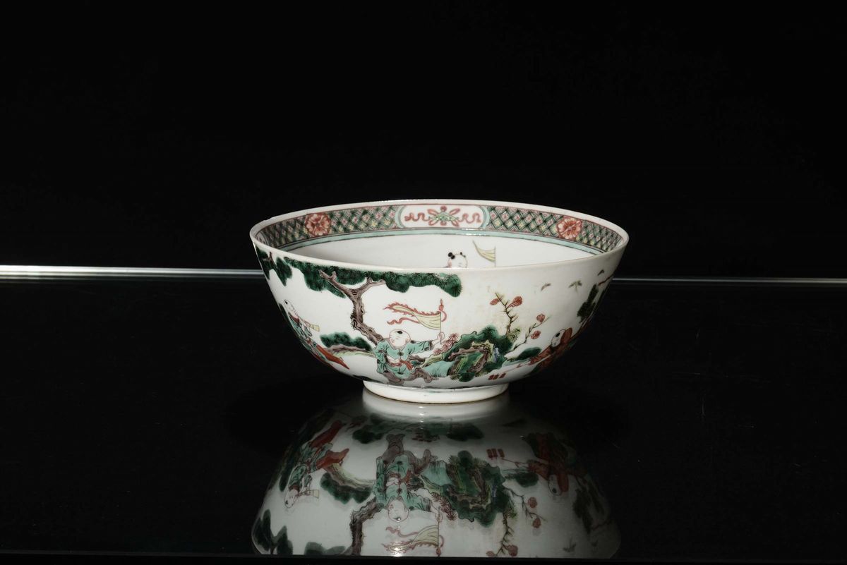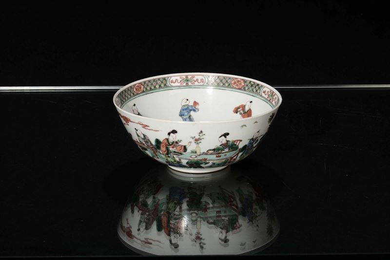 A pair of polychrome porcelain bowls decorated with figures, China, Qing Dynasty, 19th century