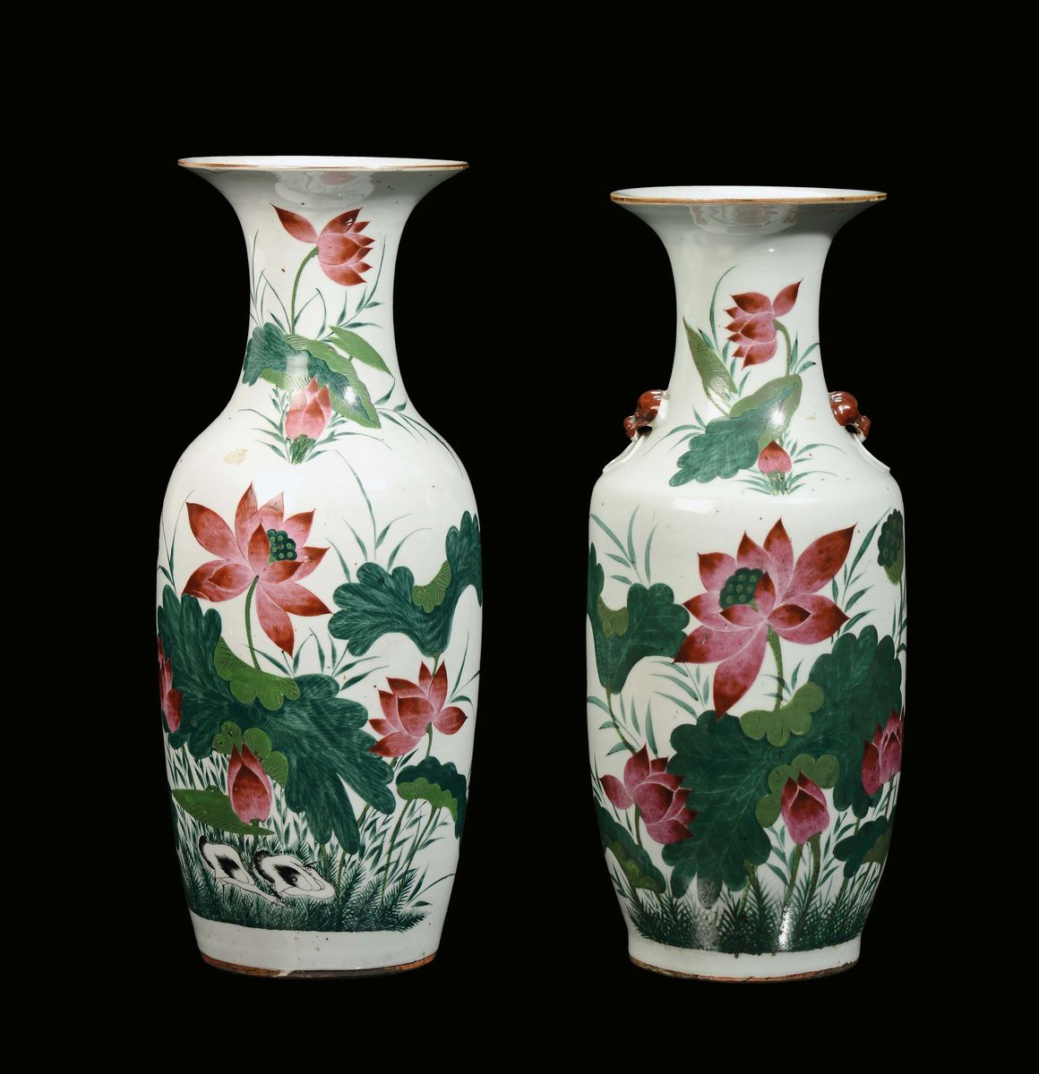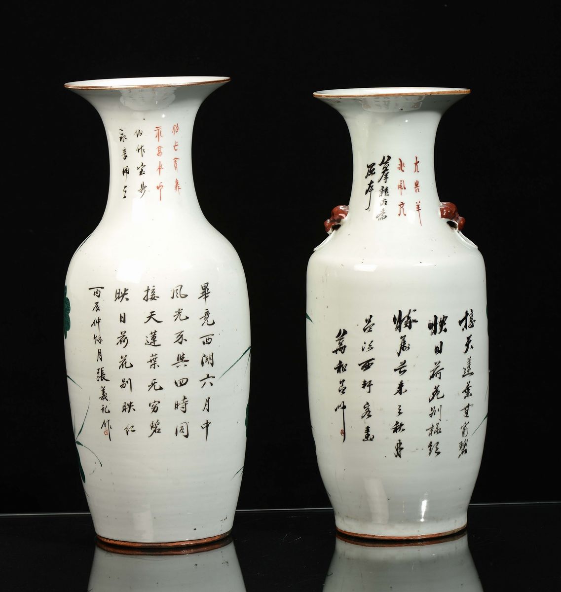 A pair of porcelain vases with flowers, China, Republic, 20th century