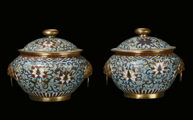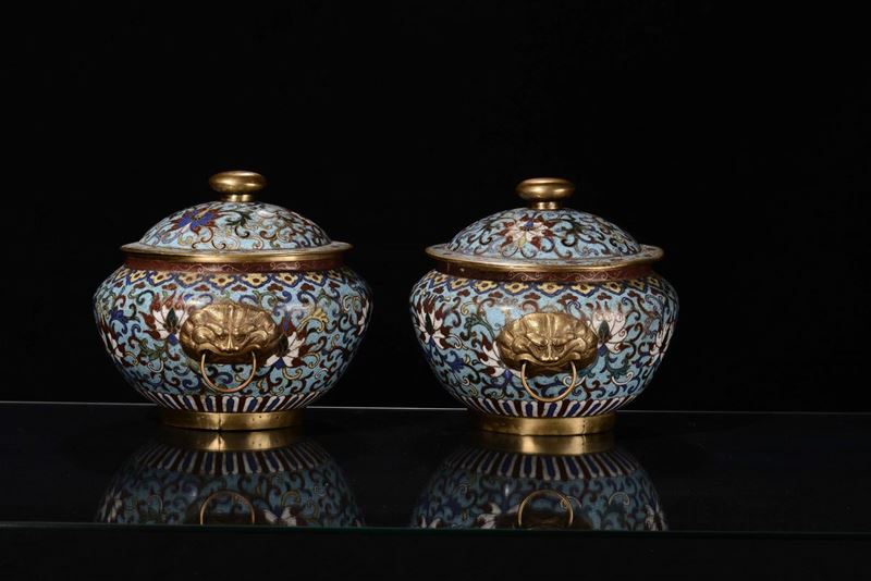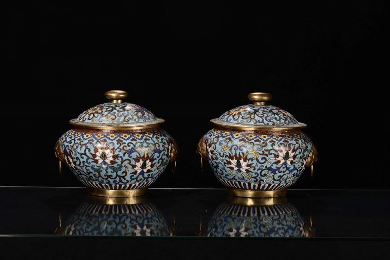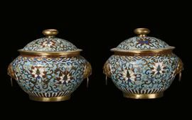 A pair of potiches and cloisonné cover, China, Qing Dynasty, 19th century